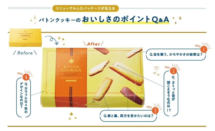 新パッケージのコンセプトは、ずばり“バトンクッキーのおいしさをもっと伝えたい”という熱い想い。