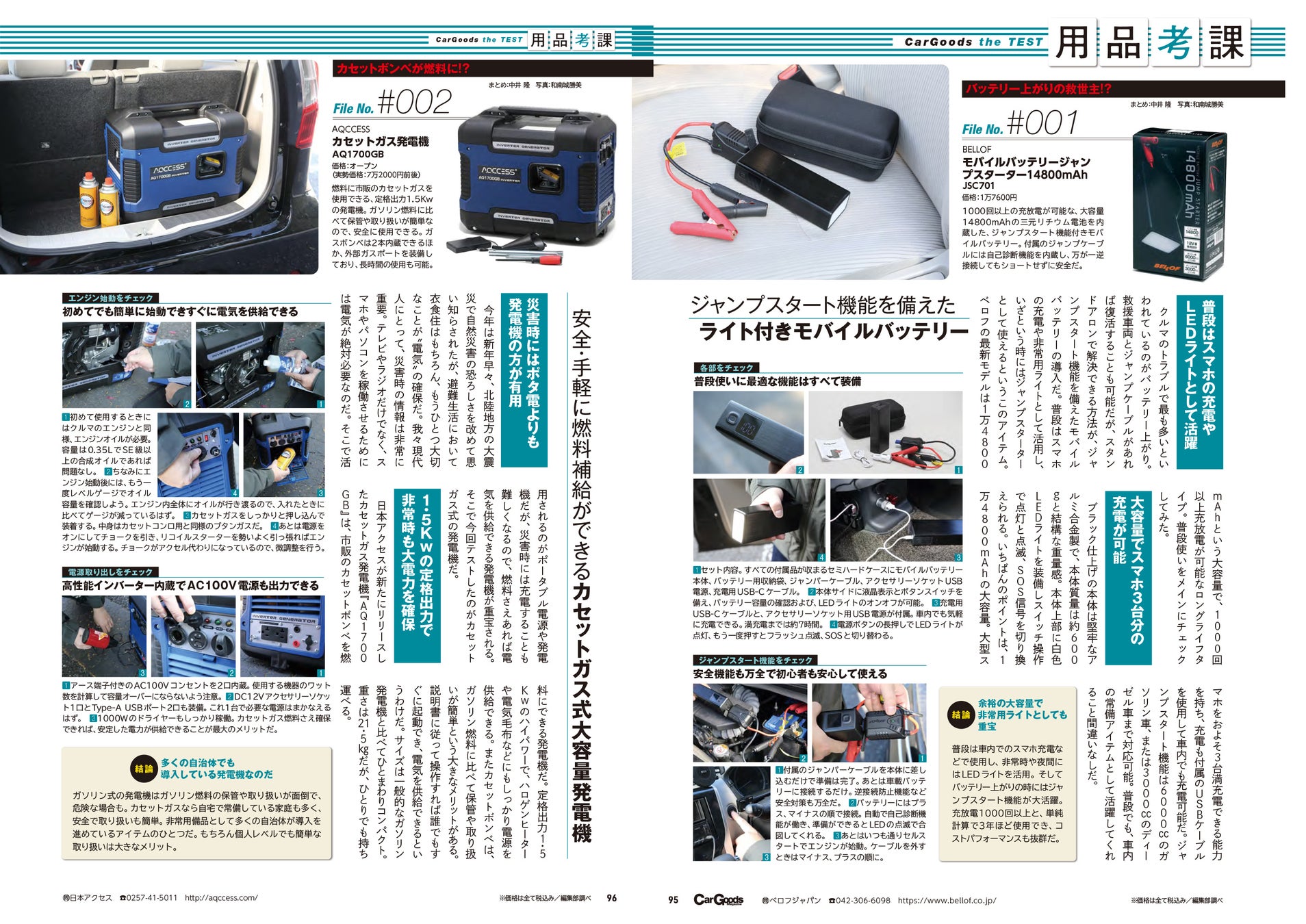 『クルマ生活応援マガジン』の路線を徹底的に強化、カー用品からアウトドアグッズまでワイドレンジに、とりわけ、新製品に関わる情報を、読者の立場に立って装着ノウハウ、使用テスト、購入アドバイス等をご紹介。