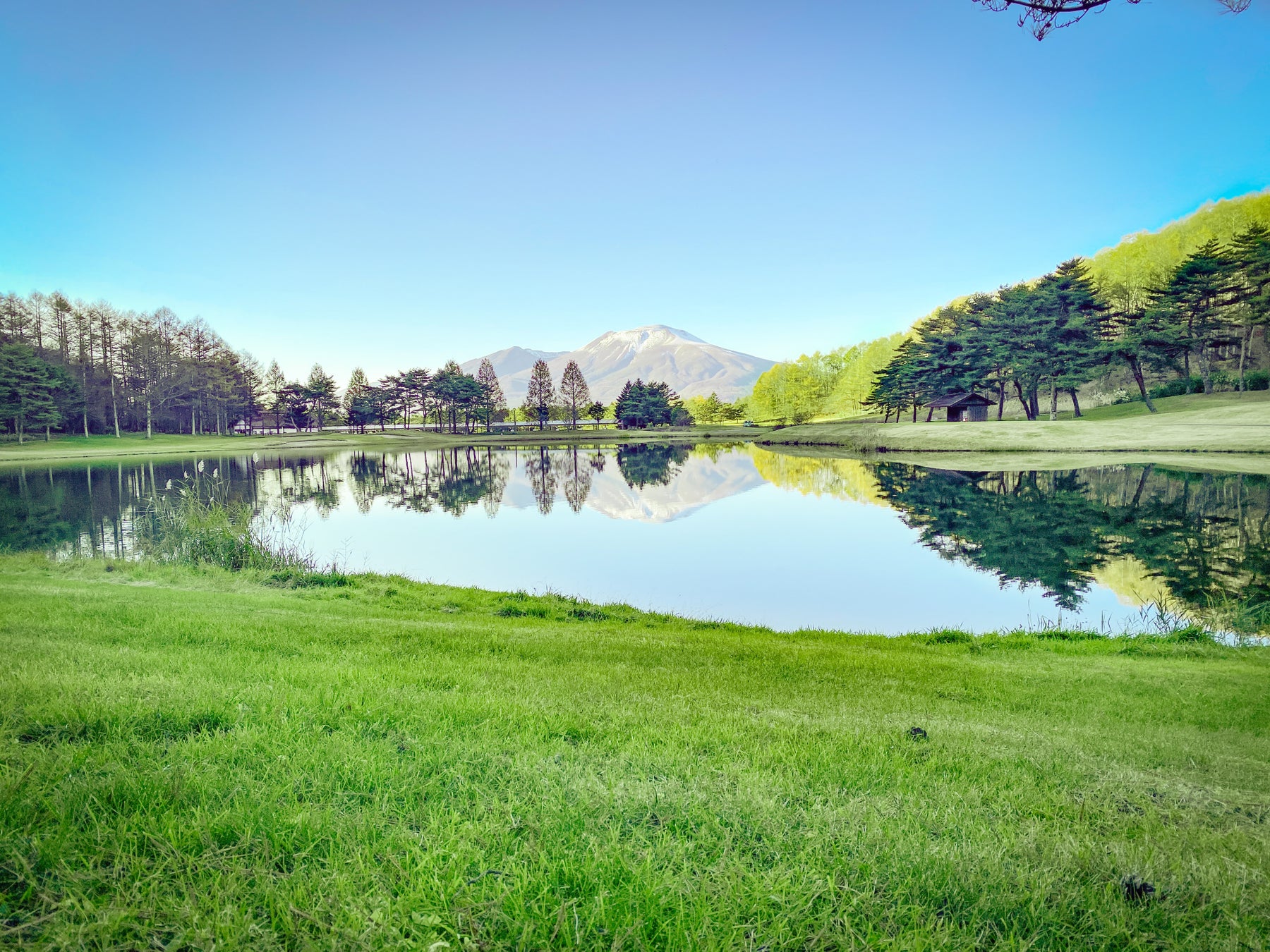 普段はゴルフプレーヤーのみ入ることの許されたしっかりと手入れされた芝生と開放感のあるゴルフコースは全部で18ホール。走行距離約5kmの周遊を電動アシスト付きの自転車で時間を気にすることなく楽々とサイクリングすることができます。一番の絶景ポイントは、4番ホール。浅間山を正面に望み、条件がそろうと水面に映る「逆さ浅間山」を一緒に楽しめます。