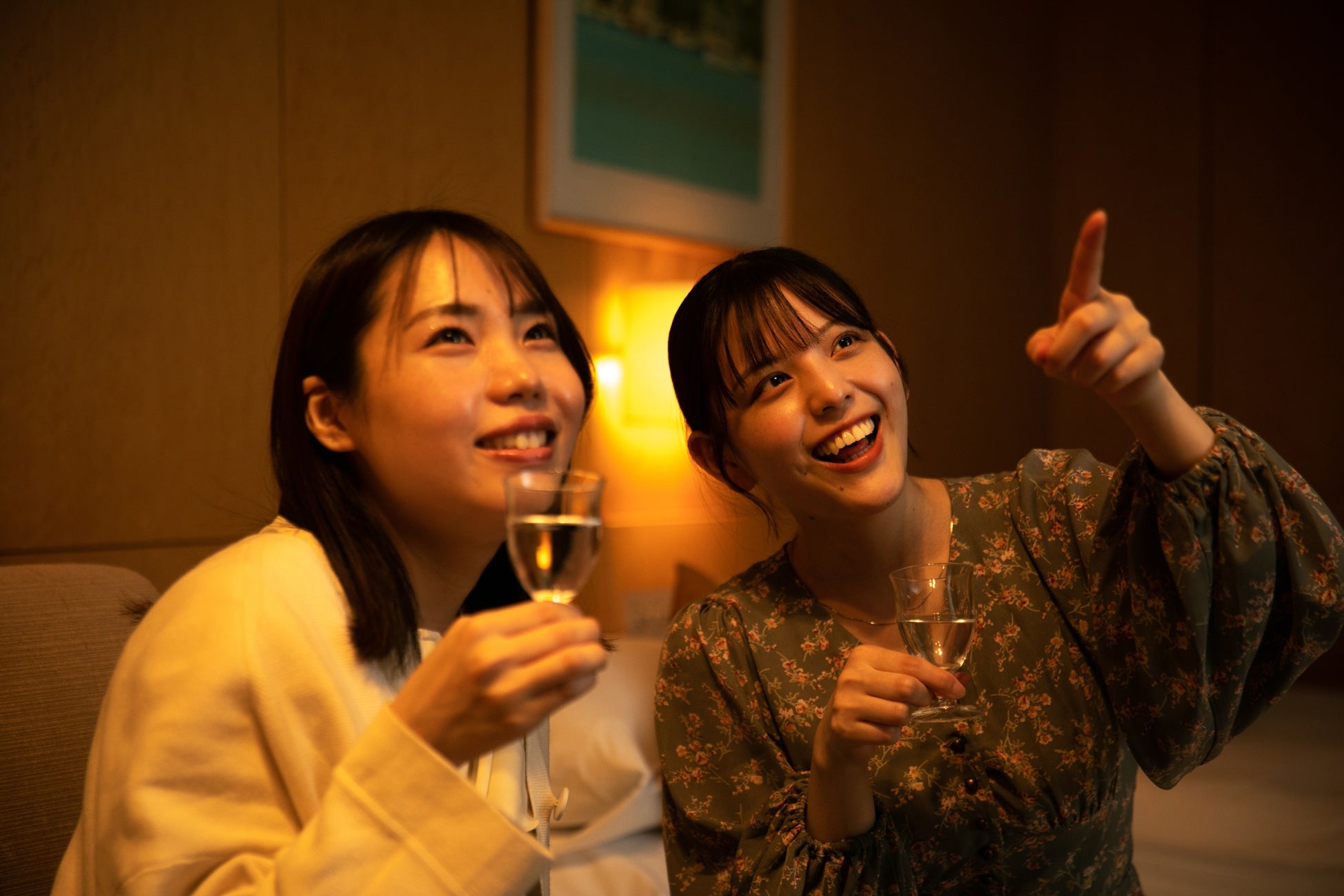また、熊澤酒造の各店舗で使用できる施設利用券(¥1,000)の特典が付いており、旅の楽しみの一つとしてご利用いただけます。全室オーシャンビューの客室で、夜の海に浮かぶ美しい秋の月とともにお月見体験をお楽しみください。