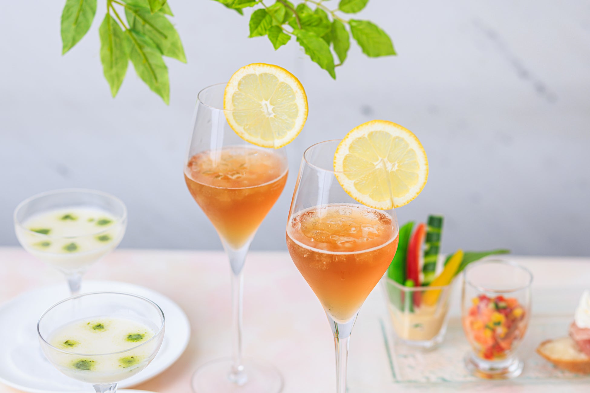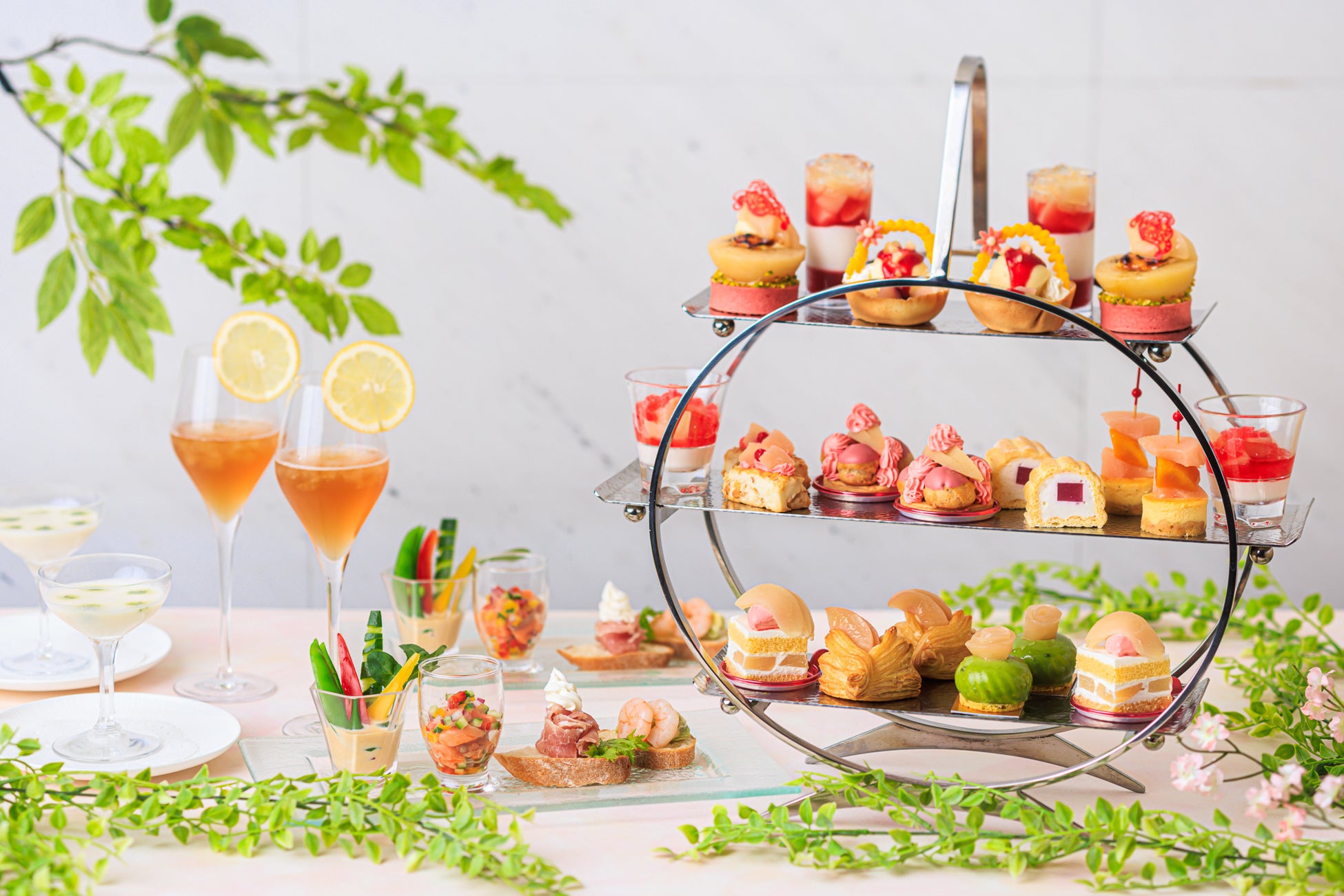 桃をキャラメリーゼして美味しさを引き出した桃のタルトや、ハイビスカスのグラニテ桃のコンポート、ピーチメルバ、桃とピスタチオのガトーなど桃を使用したスイーツ全11種をご堪能いただけます。また、セイボリーは、生ハムとクリームチーズ・エビとアボカドの2種のカナッペ、スモークサーモンのロミロミ風などに加え、暑い季節にうれしいバジル風味のポテトの冷製スープ、桃と紅茶の香りのアンサンブルを楽しめるピーチティースカッシュと共に、旬の桃を贅沢に使ったアフタヌーンティーをお楽しみください。