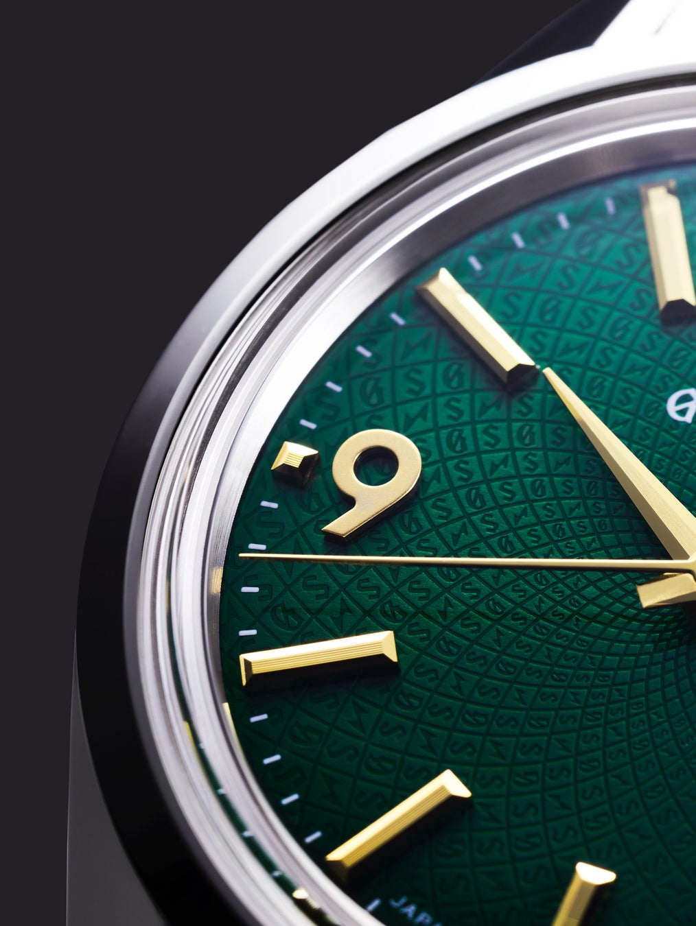 ダイヤルパターンは繊細な螺旋模様で、ブランドロゴの「G」と「S」、加えて1968年にグランドセイコー初の10振動ハイビートモデルを開発した第二精工舎(現:セイコーインスツル株式会社)を象徴するユニークな「S」マークの3種を幾何学模様のように放射状にあしらったデザインです。本パターンは2018年に発売された「キャリバー9S 20周年記念限定モデル」のみに採用されたダイヤルパターンで、キャリバー9Sの伝統を宿しつつ、放射状に外に広がっていくさまは、「進化」を追求し続けるというグランドセイコーの革新性を表しています。