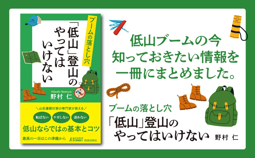 青春出版社(東京都・新宿区)は『ブームの落とし穴 「低山」登山のやってはいけない』(野村 仁/著)を11月19日に発売いたしました。