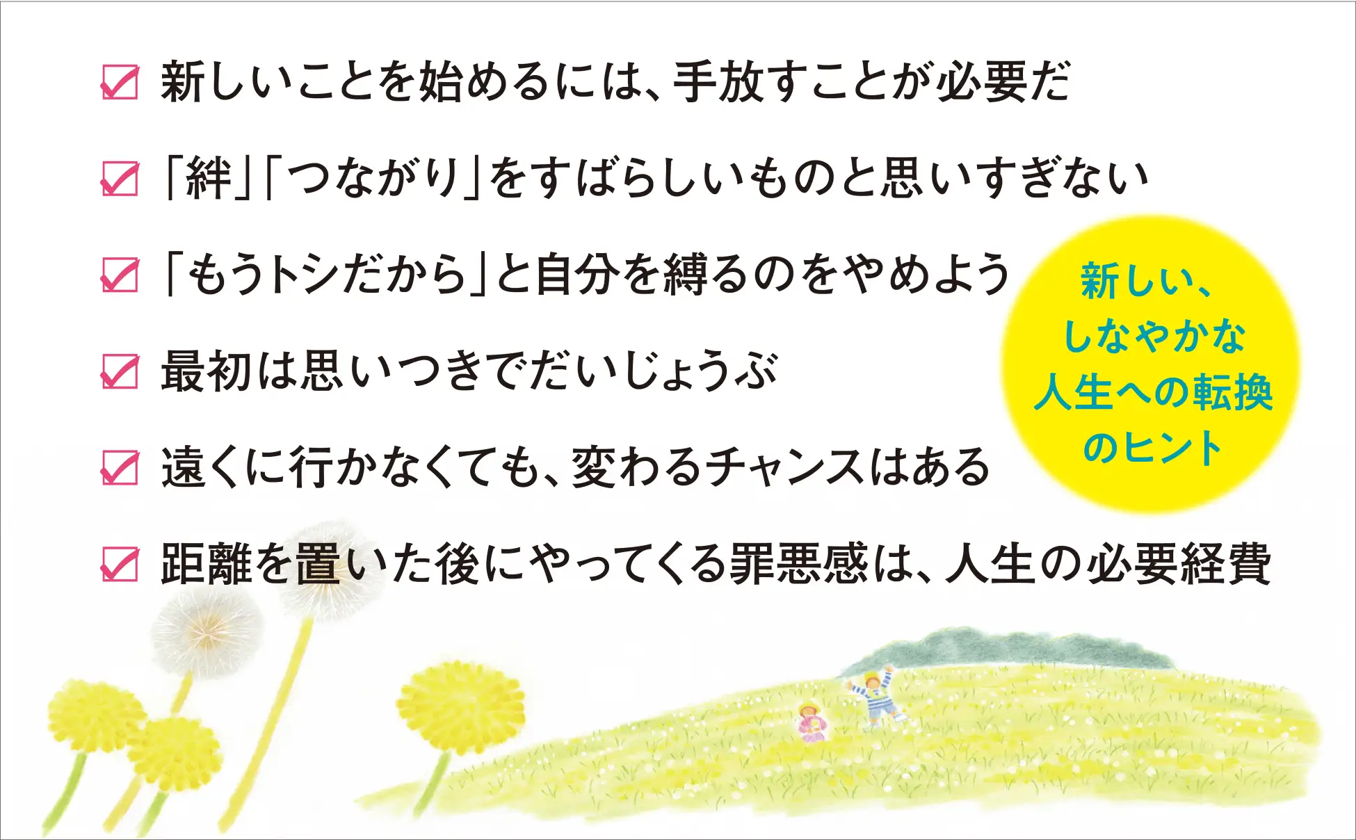 家族、旧友、職場、近所付き合い、LINEグループ、なんだかしんどい……という、あなたへ。今の居場所に固執しなくても、居心地のいい場は、きっと見つかります。