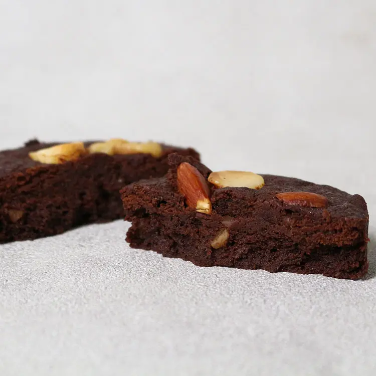 カカオ70%の有機アガベチョコレートを使用した、贅沢なチョコレートブラウニーです。深いビターチョコレートの生地に、砕いたマカダミアナッツを加え、さらに3種類のナッツをゴロッとトッピングすることで、よりリッチでコクのある味わいに仕上げました。濃厚なチョコレートとナッツの香ばしい旨味が引き立ち合い、コーヒーやミルクと一緒に召し上がると至福のひとときをお届けします。
