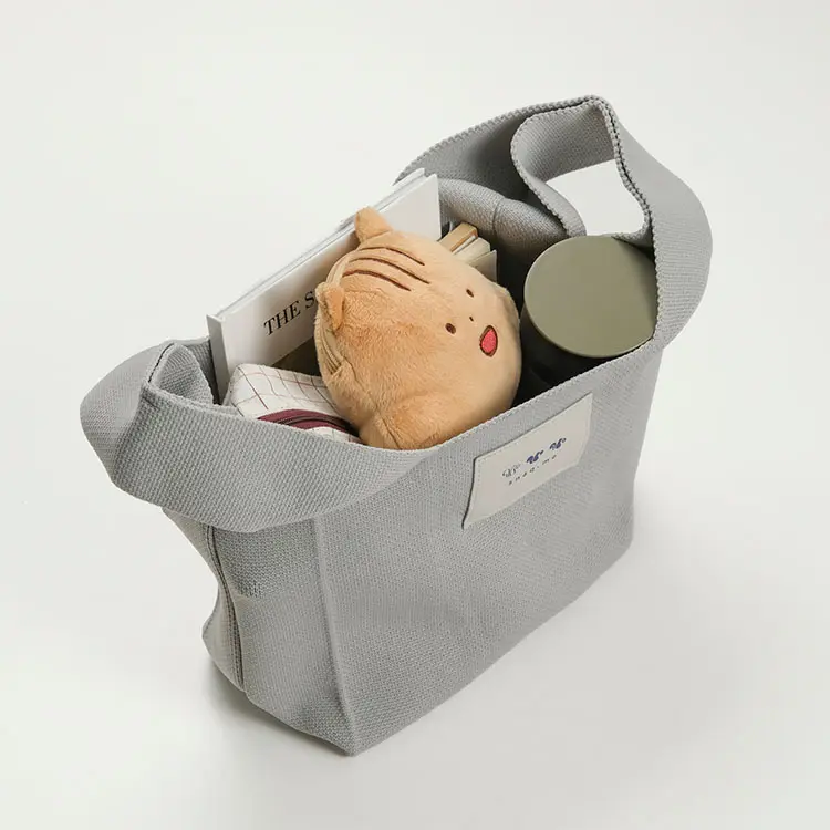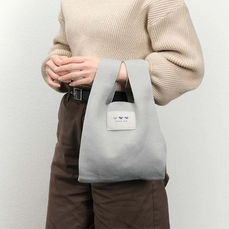 寒い空気のなかでそっと寄り添ってくれるような、やわらかいグレーのニットバッグ。