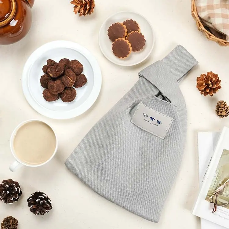 「冬らしいグレーのニットバッグに、心まであたたまるおやつを添えて。厚手のニット地でマチもしっかり、見た目以上にたっぷり入るのも嬉しいポイント。小さなリスのロゴがさりげない可愛さを添えてくれて、毎日のおともにぴったり。寒い季節を、やさしいぬくもりと一緒にお楽しみください。」