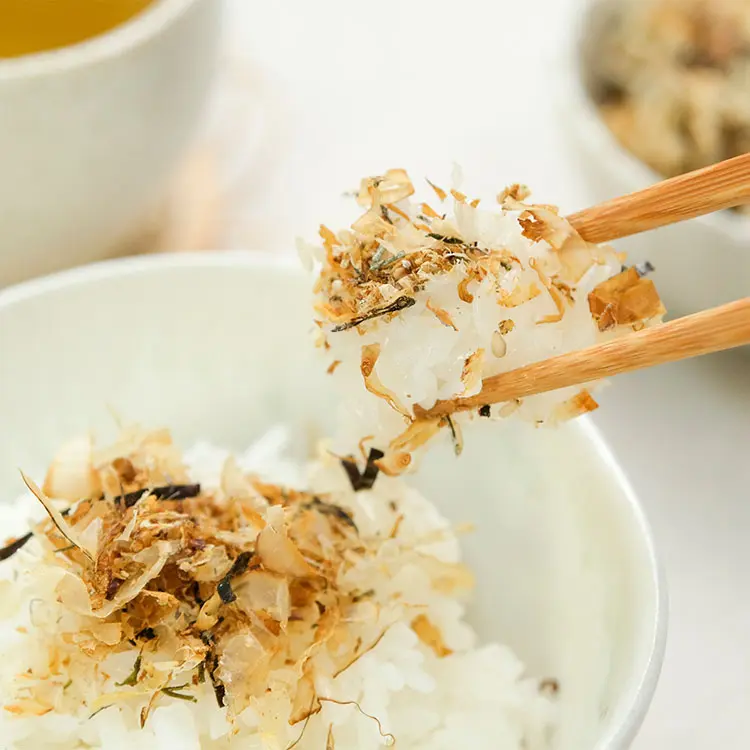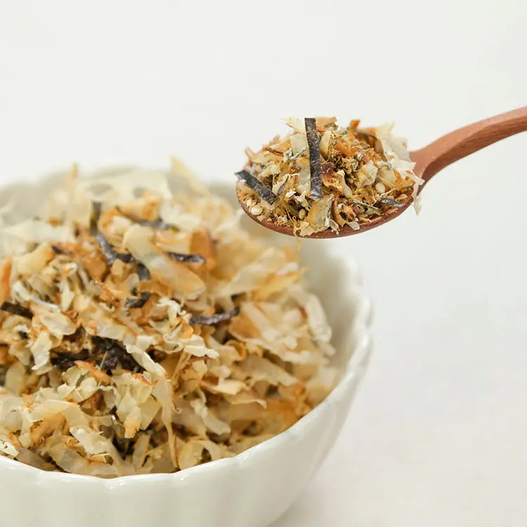 「国産のいわし節、のり、北海道産の厚葉刻み昆布など、素材そのものの香りや食感をいかしたふりかけです。いわし節の香ばしさと昆布の旨み、のりの軽やかな風味が調和し、食卓を豊かに彩ります。」