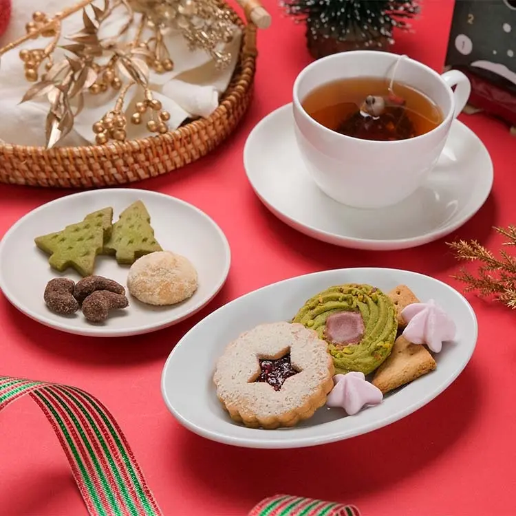 「ホリデーシーズンを感じるようなおやつをセレクトしました。甘くてサクサクなクッキー、ふんわりケーキっぽいおやつ、しょっぱいおやつ…いろんな味や食感が楽しめるおやつが入っています。明日はどんなおやつかな?とクリスマスまで楽しんでいただけると嬉しいです!」