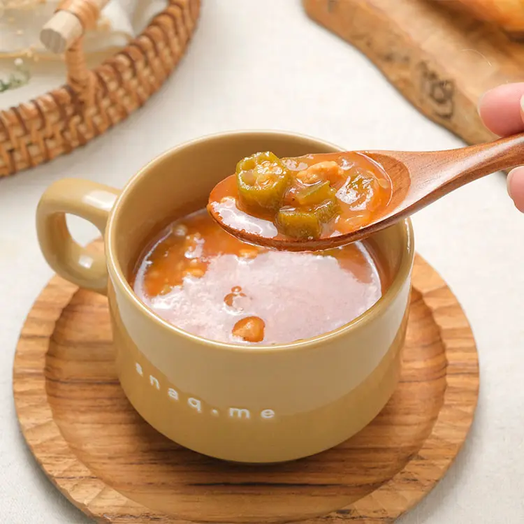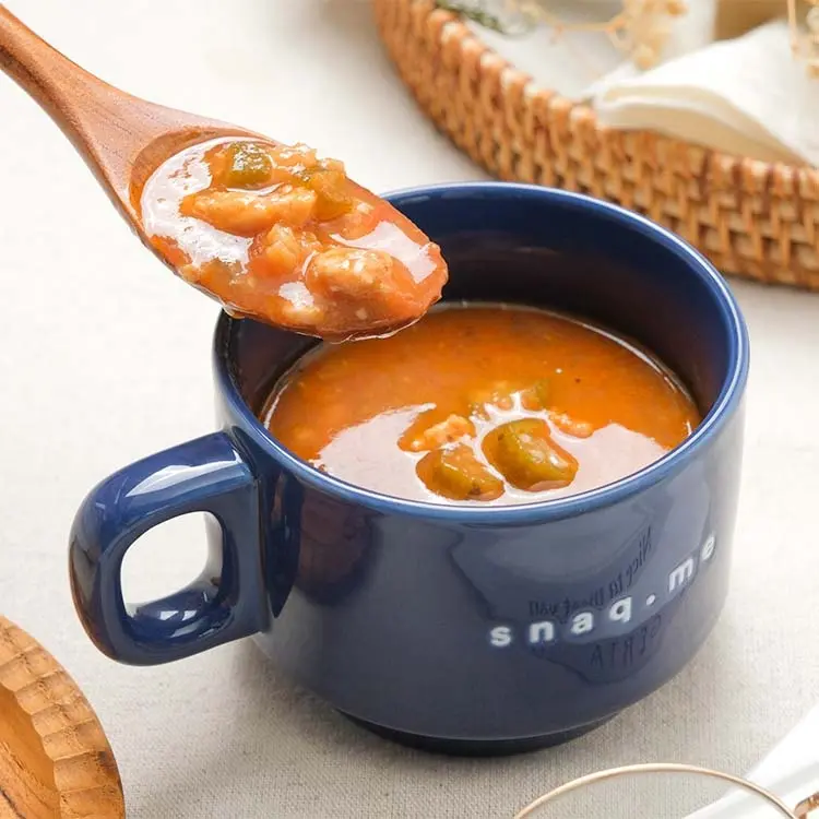 国産素材で煮込んだ濃厚ガンボスープを、スナックミーオリジナルマグとともにお届け