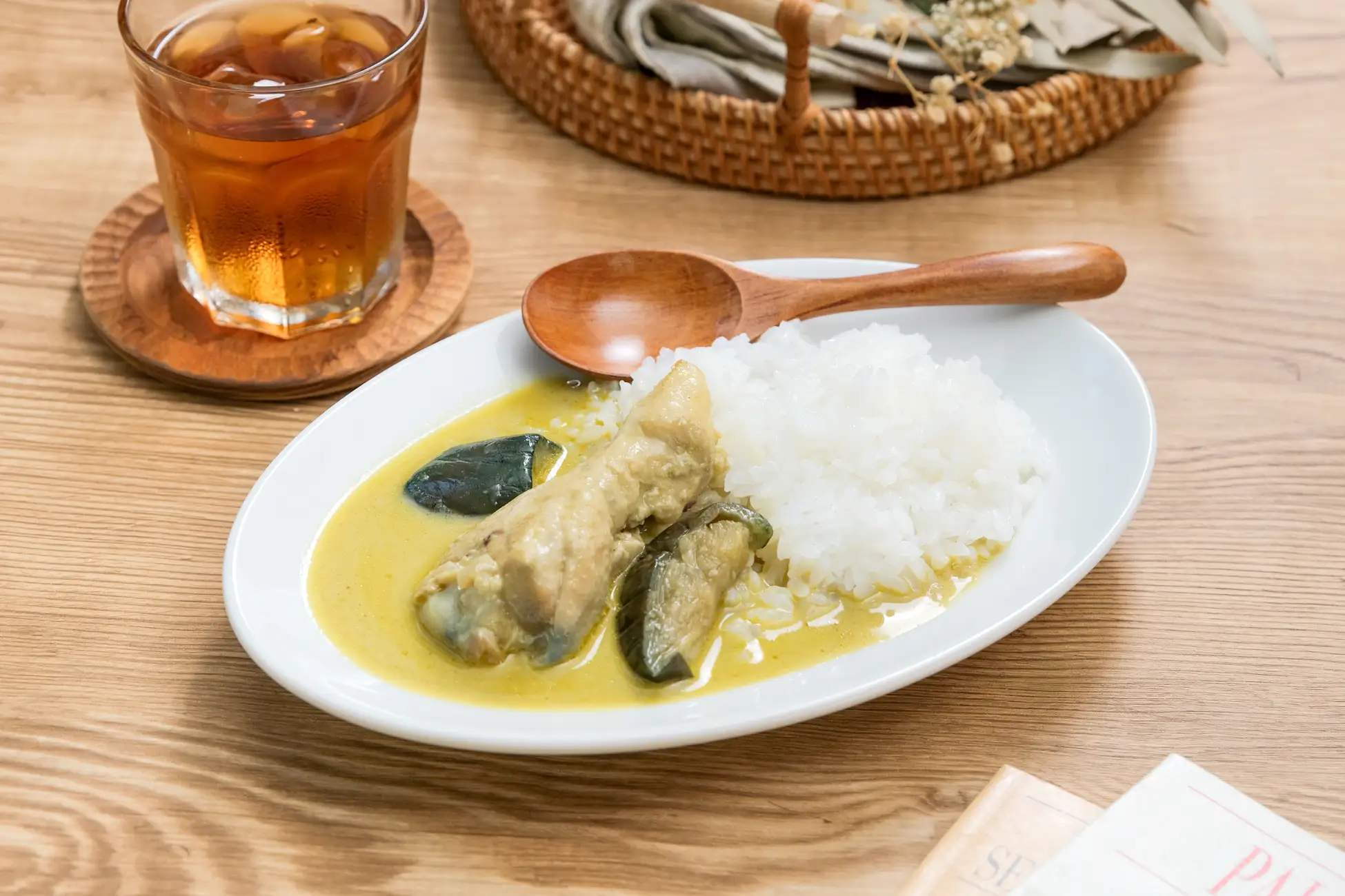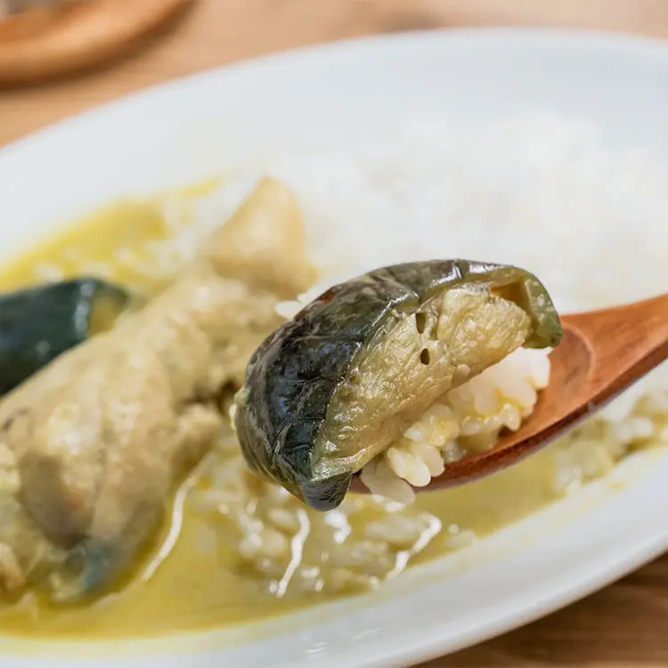 原材料:鶏手羽元、ココナッツミルク、ナス、たまねぎ、きび糖、植物油脂、唐辛子、レモングラス、にんにく、食塩、シャロット、ガランガル、えび、カフィアライムの皮、コリアンダー、クミン、ターメリック、ナンプラー