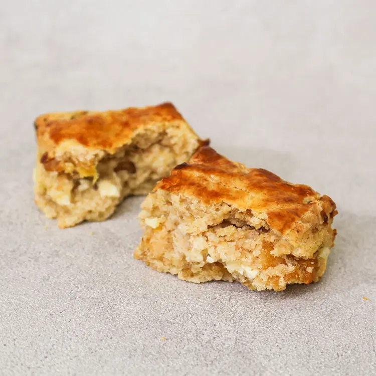 プレミアムドライパインを贅沢に練り込み、クリームチーズの爽やかな酸味で夏らしいさわやかな後味に仕上げました。シェイクやコーヒーとの相性も抜群です。