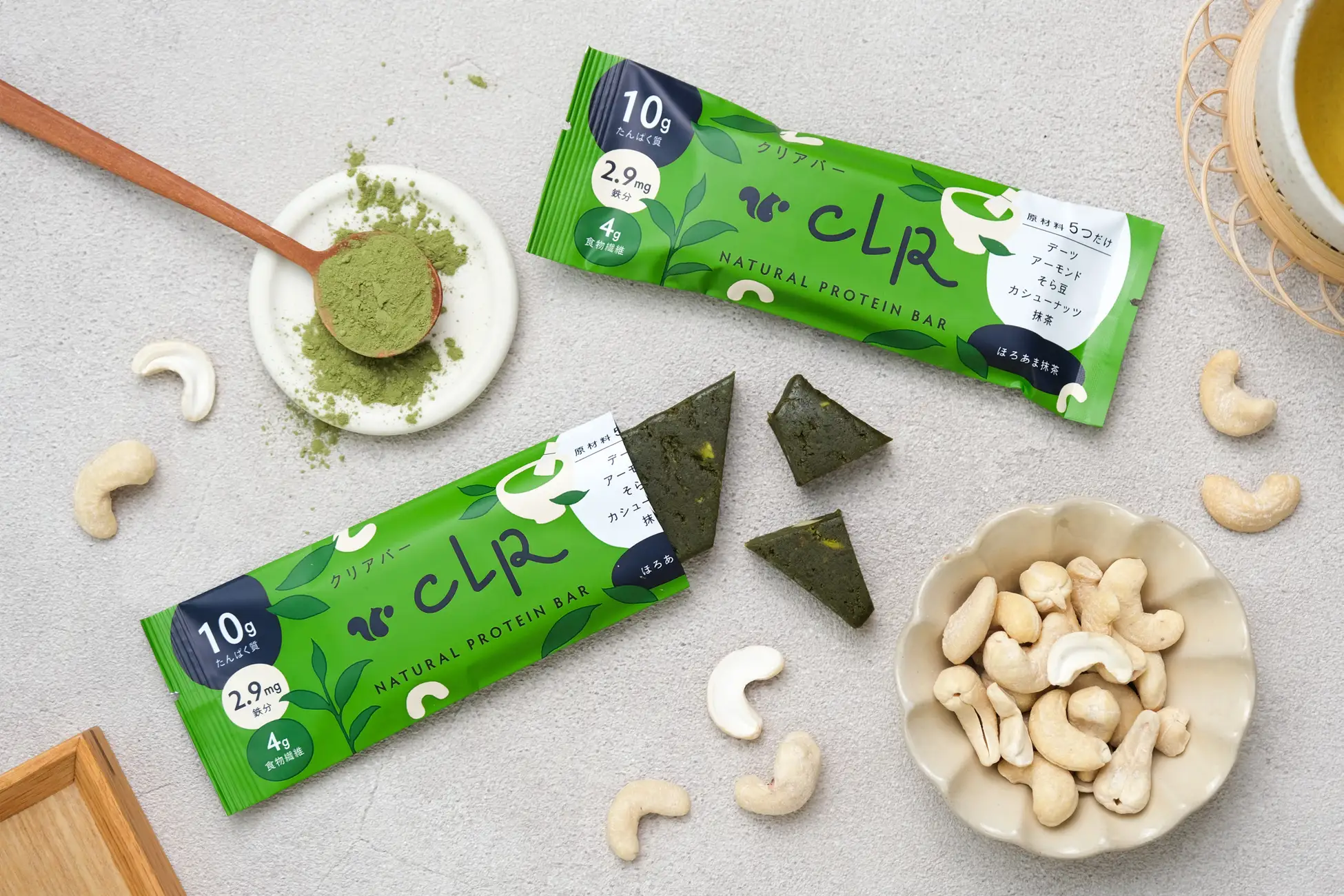 2017年の販売開始から累計販売数30万本を突破した『CLR BAR(クリアバー)』は、添加物、砂糖、動物性原料を一切使わず、プロテイン(たんぱく質)、ビタミン、ミネラルなどの栄養素を、ナッツ、フルーツなどの自然由来の原料のみから摂取することのできる、プロテインバーです。