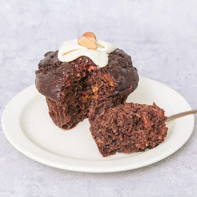 アップサイクルされた無農薬人参を使用し、環境にも配慮した商品です。米粉と大豆粉をブレンドした生地は、しっとりとした食感が特徴です。有機アガベチョコ、カカオニブ、ココアパウダーを使用し、リッチな味わいに仕上げました。スナックミーで人気の「しっとりドライマンゴー」、「プレミアムドライパイン」を練り込み、自然な甘みとフルーティーなアクセントをプラスしています。シナモン、ナツメグ、ブラックペッパーのスパイスが風味を引き立てます。