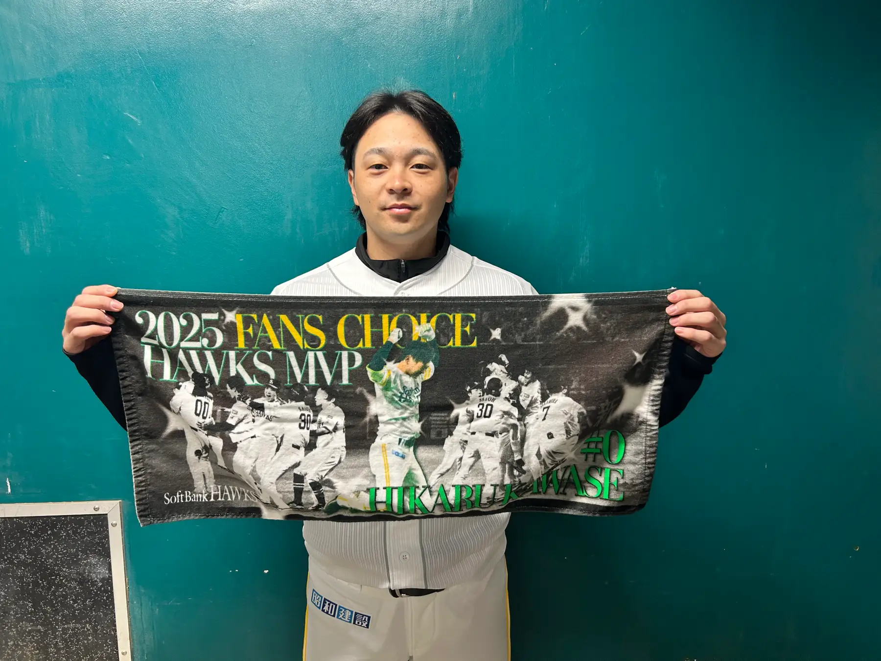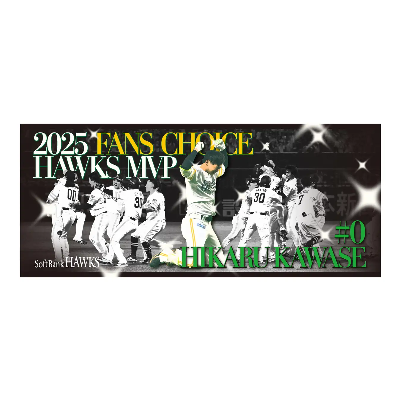 「ファンが選ぶホークスMVP2025」の結果を本日開催のファンフェスティバル2025内で発表!見事、川瀬晃選手がMVPに選ばれました!投票MVPグッズの受注販売を本日よりHAWKS公式オンラインストアでスタート。Tシャツ・フェイスタオルはHAWKS STORE HOMEでもお買い求めいただけます。