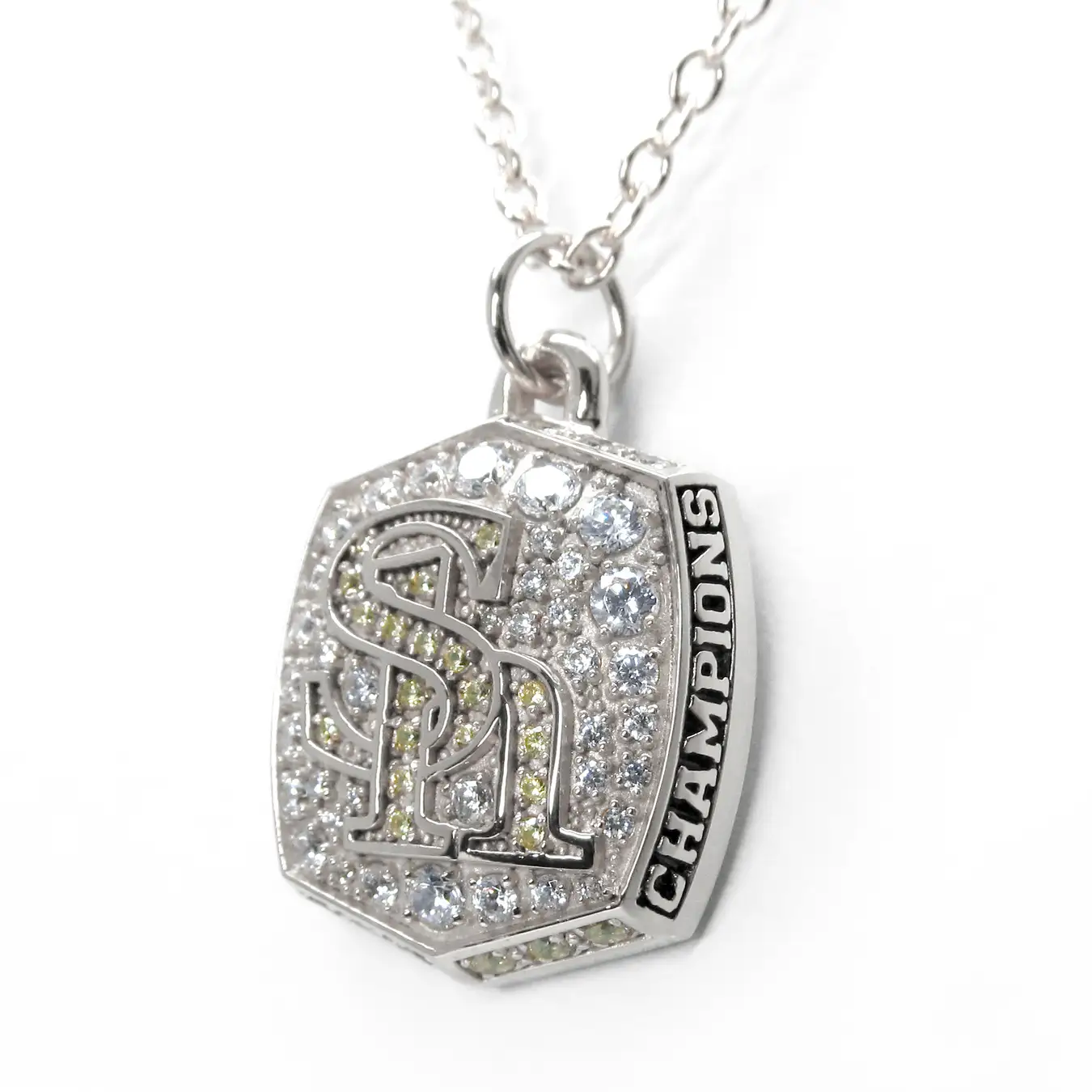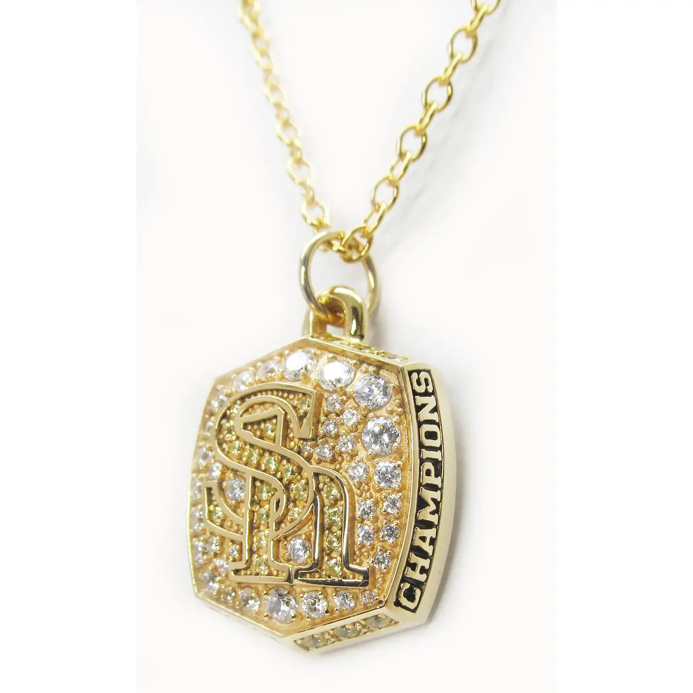 ミニ・チャンピオンリングのベゼル(リング上部)をペンダントトップにしたペンダントです。お守り代わりとして身に着けたり、付属のジュエリーケースに入れて飾ったりすることもできます。
