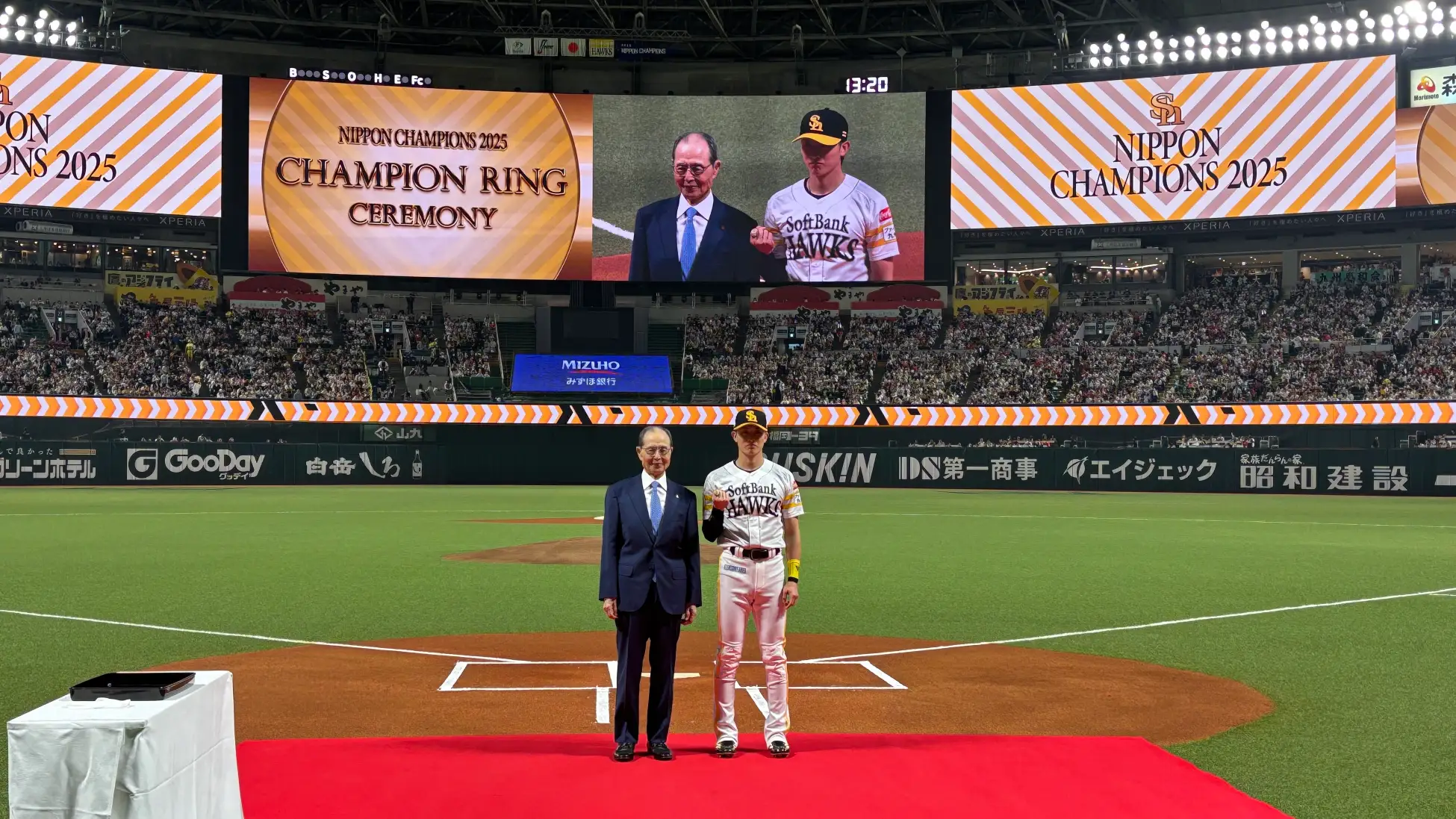 本日3月28日(土)の試合開始前に2025シーズンの日本一達成を記念し、「チャンピオンリング贈呈式」を実施いたしました。ホークス公式オンラインストアでは、選手に贈呈したチャンピオンリングとほぼ同デザインのリングをはじめとした3種のプレミアムなジュエリーとアパレルアイテムの受注販売を開始いたします。パーソル パ・リーグ二連覇、日本一を達成したメモリアルな2025シーズンの喜びをぜひ選手達と分かち合ってください♪
