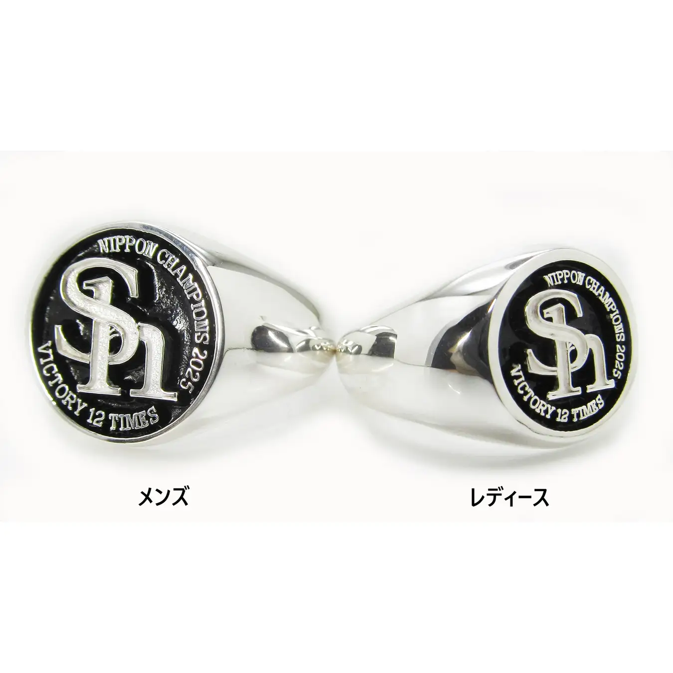 日常使いしやすいシンプルでボリュームも抑えられたデザインの「チャンピオン・シグネットリング」は、「NIPPON CHAMPIONS 2025」、「VICTORY 12 TIMES」の彫刻が入っています。レディース用はメンズ用のリングに比べ、ベゼルが一回り小さいデザインとなっています。