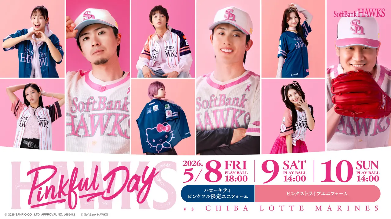 福岡ソフトバンクホークス株式会社(本社:福岡市中央区、代表取締役社長CEO:後藤芳光)は、みずほPayPayドーム福岡で5月8日(金)~10日(日)の3日間開催する「ピンクフルデー2026」2戦目のゲストに、2026年4 月8 日(水)にメジャーデビューを果たした4人組男性歌謡コーラス・グループ「モナキ」が決定したことをお知らせします。始球式にはメンバーを代表して福岡県出身のケンケンさんが登場し、試合終了後にはモナキのライブパフォーマンスを実施します。