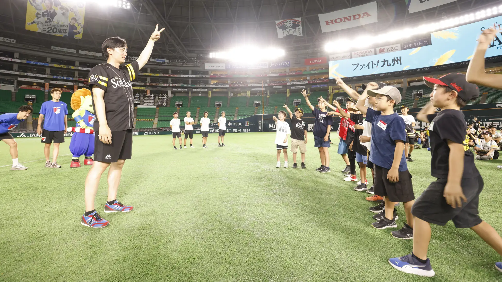 このイベントで全8会場・874名の方に参加いただきました。参加者の皆さまに心から御礼を申し上げます。アンバサダーの和田さんはこのイベントを振り返って「どの会場でも子どもたちの元気にパワーをもらいました。昨今、子どもたちの選択肢が広がる中で、もう一度スポーツを見てもらいたい、やってもらいたいという想いがありました。今回スポーツに触れ合う機会をたくさん設けることができたので、これを機に参加した子どもたちがさらにいろんなスポーツに触れ、興味を持ってもらえたら嬉しいです。そしてこの中から将来プロスポーツ選手の道に進むような子が現れて、『あのイベントで交流した子たちがプロ選手になったんだな』という日がいつか来てくれたら嬉しいです」と語りました。一人でも多くの子どもたちが、この出会いをきっかけにスポーツ、ホークスへの興味を深めてくれれば幸いです。