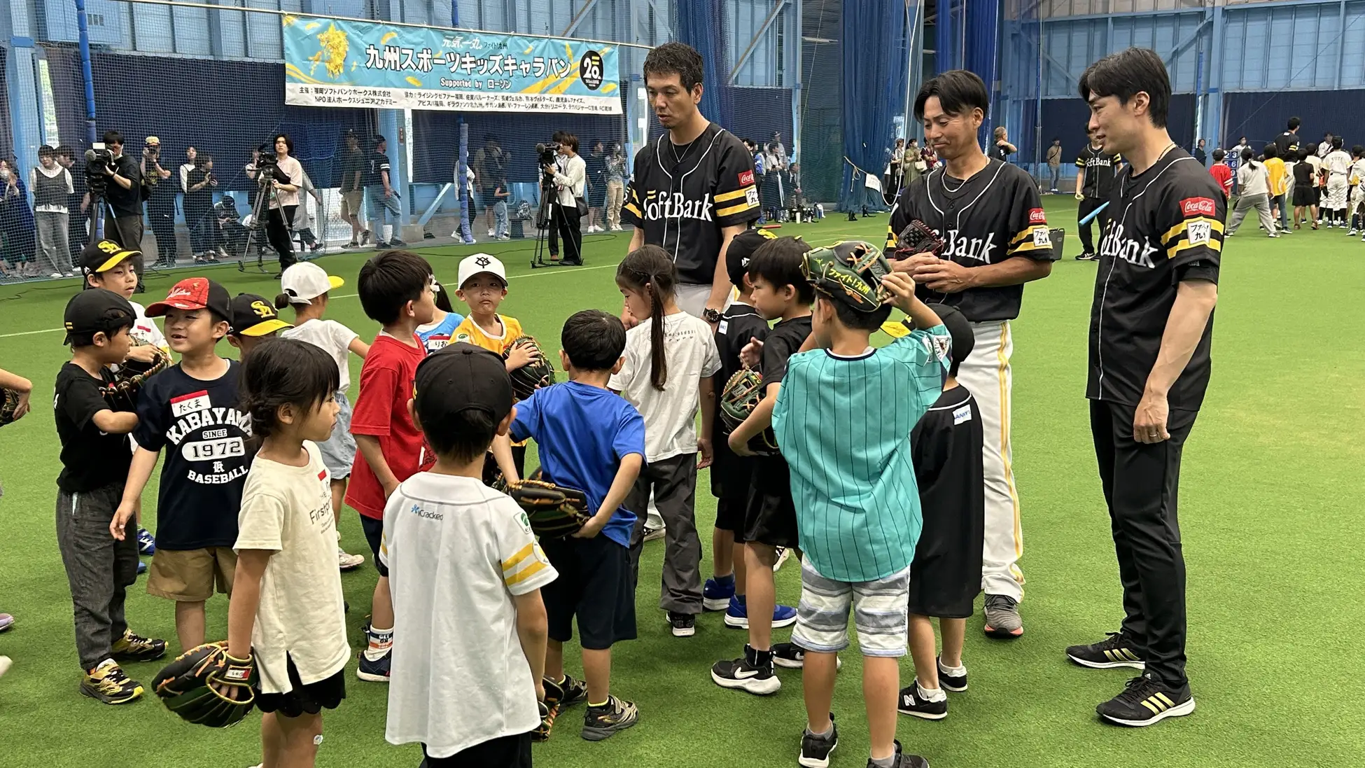 福岡ソフトバンクホークスは、NPO法人ホークスジュニアアカデミーとともに、「ファイト! 九州」プロジェクトおよびソフトバンクホークス誕生20周年記念事業の一環として、九州・沖縄各地の全8会場(※熊本会場は雨天中止)で「九州スポーツキッズキャラバン Supported by ローソン」を開催しました。