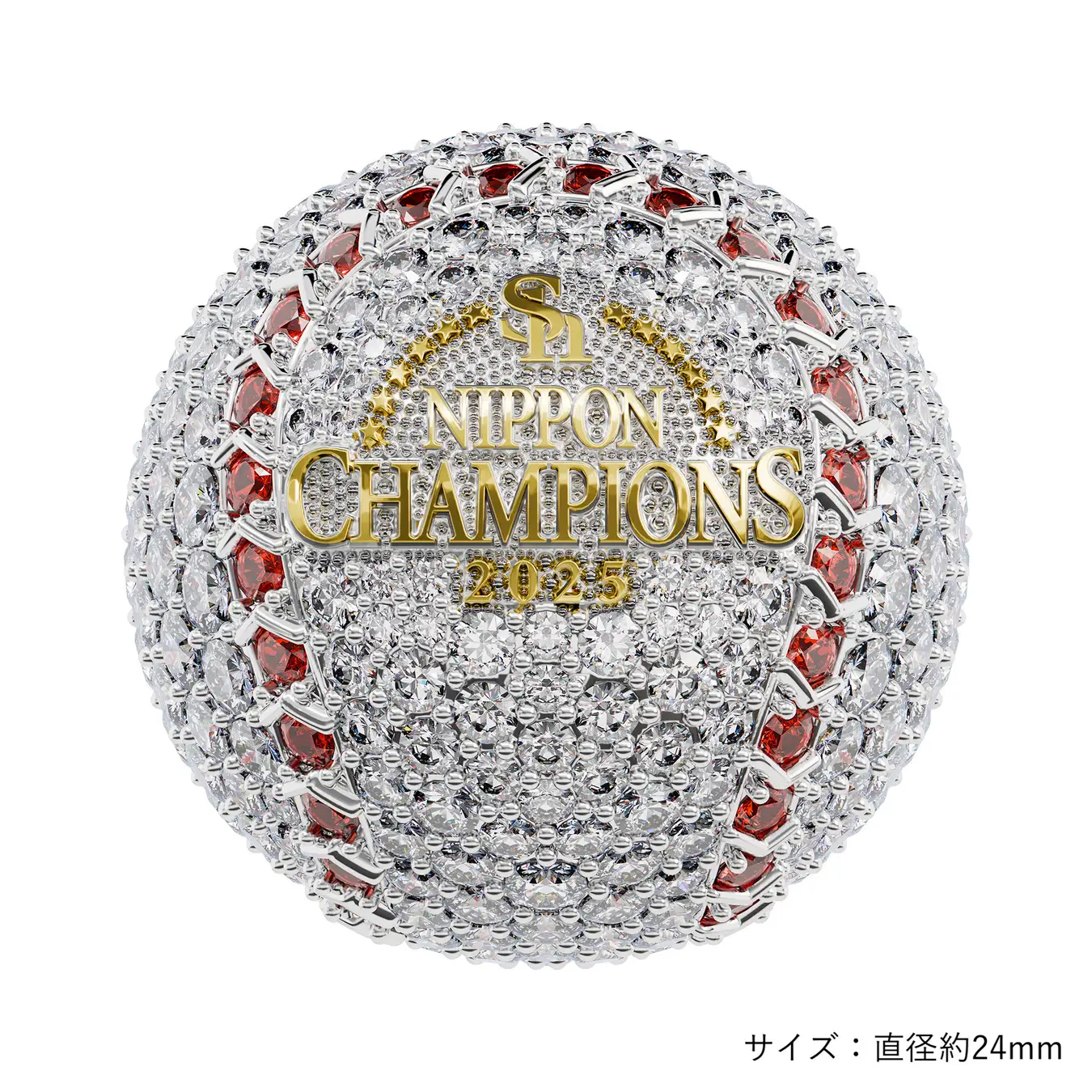 実際の硬式ボールと同サイズの純プラチナ製ボールに、婚約指輪にも使われるクオリティのダイヤモンド2009個(総計約200ct)を贅沢に敷き詰めた、比類なき逸品。縫い目部分にはルビーの中でも最高品質とされるピジョンブラッドルビーを、そしてチャンピオンロゴにはK18イエローゴールドを使用。ボールを支えるのは、3本の純金製バットスタンドです。黄金の輝きがプラチナの光を際立たせ、栄光と誇りを演出します。ダイヤモンドの一粒一粒が優勝の記憶を刻む、 唯一無二の日本一記念モデルです。(完全受注生産)