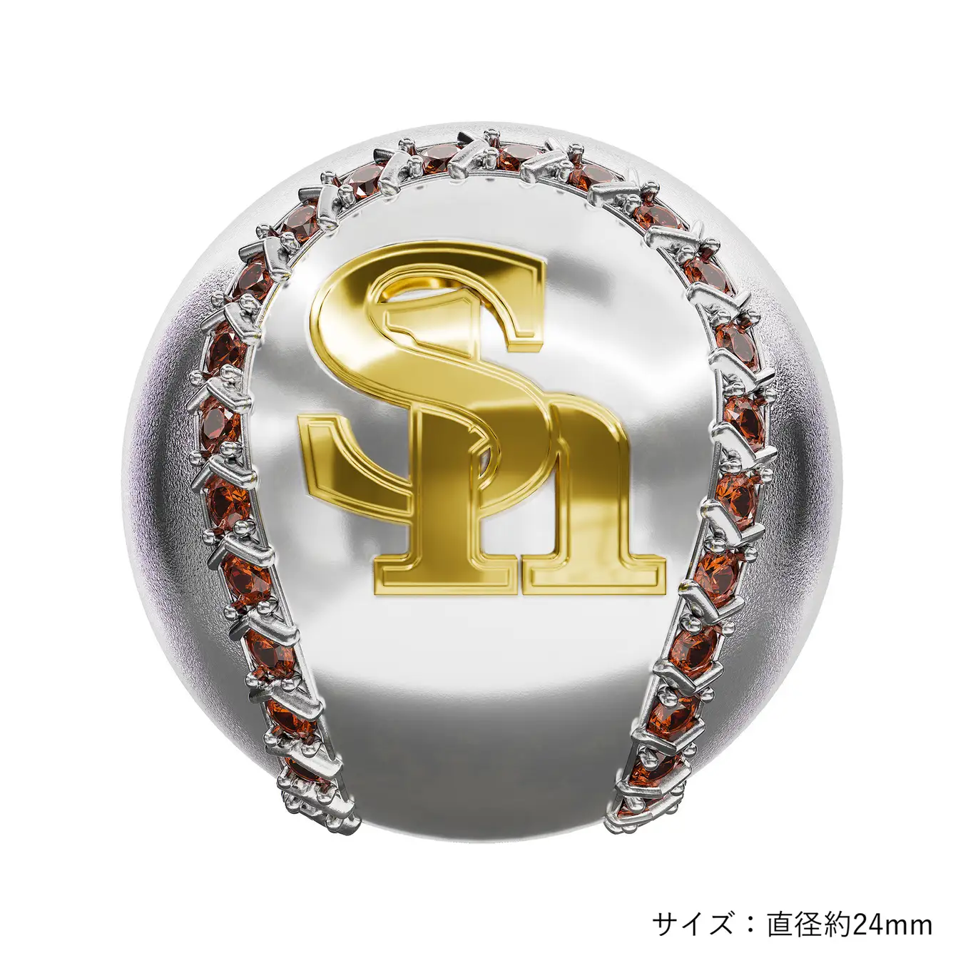 優勝の象徴を、重厚な輝きとともに形にしたボールオブジェ。ボール本体にはシルバー(SILVER925)を使用し、チームロゴ部分にはK18イエローゴールドをあしらいました。縫い目部分には、日本一への情熱を象徴する輝きの美しい赤系のガーネットを50石セッティング。一部にマット加工を施すことで、2種のロゴを際立たせながら、上品で落ち着いた輝きを放ちます。
