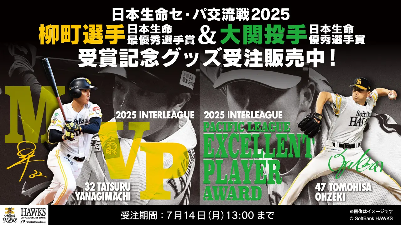 交流戦MVP柳町選手、優秀選手賞(パ・リーグ)大関選手の記念グッズを販売中!
