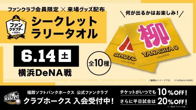 【6/14】クラブホークス会員へ応援アイテム「シークレットラリータオル」配布
