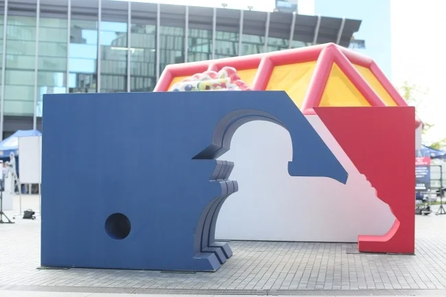 角度を変えると“MLB”の文字にもなる巨大な「バッターマンロゴ」もモニュメントやメジャーリーガー等身大パネルと記念撮影をお楽しみください!
