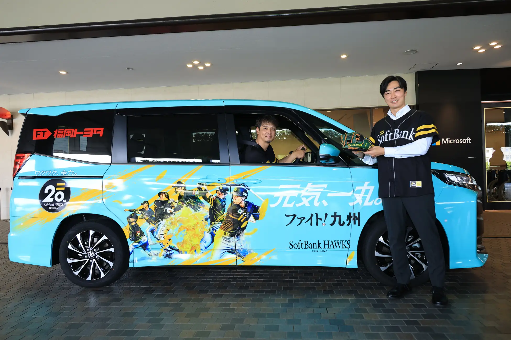 オリジナルのラッピングを施した「九州スポーツキッズキャラバンカー」が誕生。和田アンバサダーやスタッフが各会場を回る際に使用する予定です。