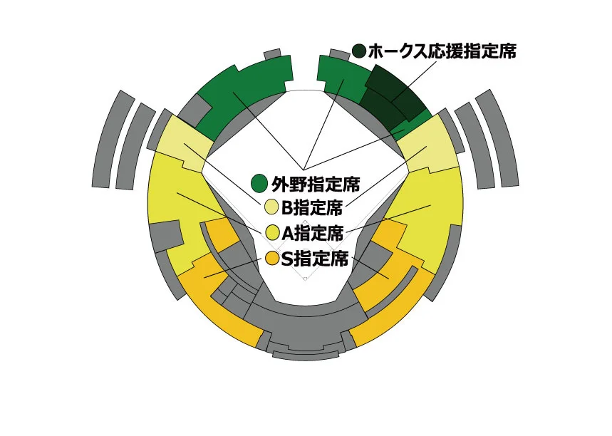 ※外野指定席にはホークス応援指定席を含みます。外野指定席を購入された場合、外野指定席1塁側か3塁側、ホークス応援指定席は選べません。