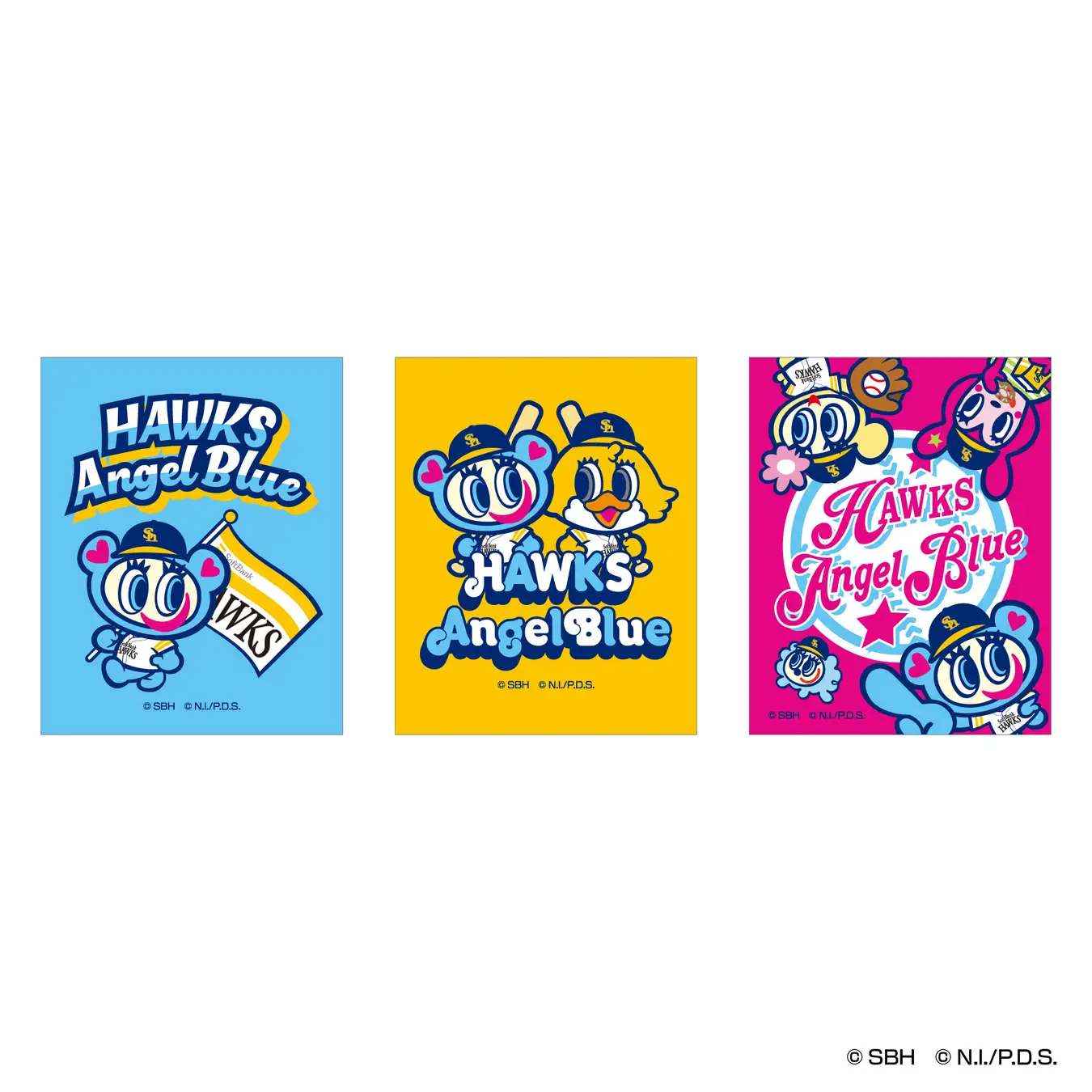 今回のコラボレーションでは、特別描き下ろし仕様のハリーや、ホークスのユニフォームやキャップを身にまとったナカムラくんやエンジェルブルーの仲間たちが登場!