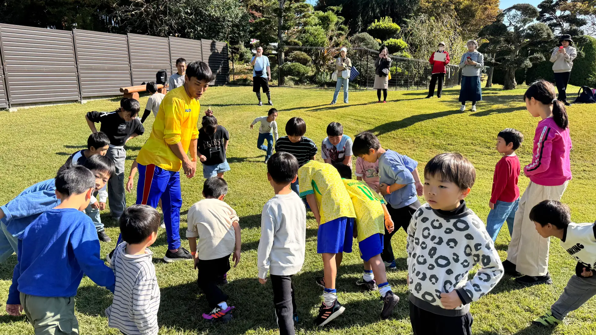 会場となったのは園内のリラックスエリア。広々とした天然芝の広場です。この日は埼玉県民の日で公立学校はお休み。気持ちのいい秋晴れの空の下、多くの親子連れが列をつくる賑わいとなりました。