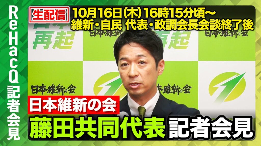 【生配信・日本維新の会】日本維新の会・藤田文武共同代表 記者会見【ReHacQ】