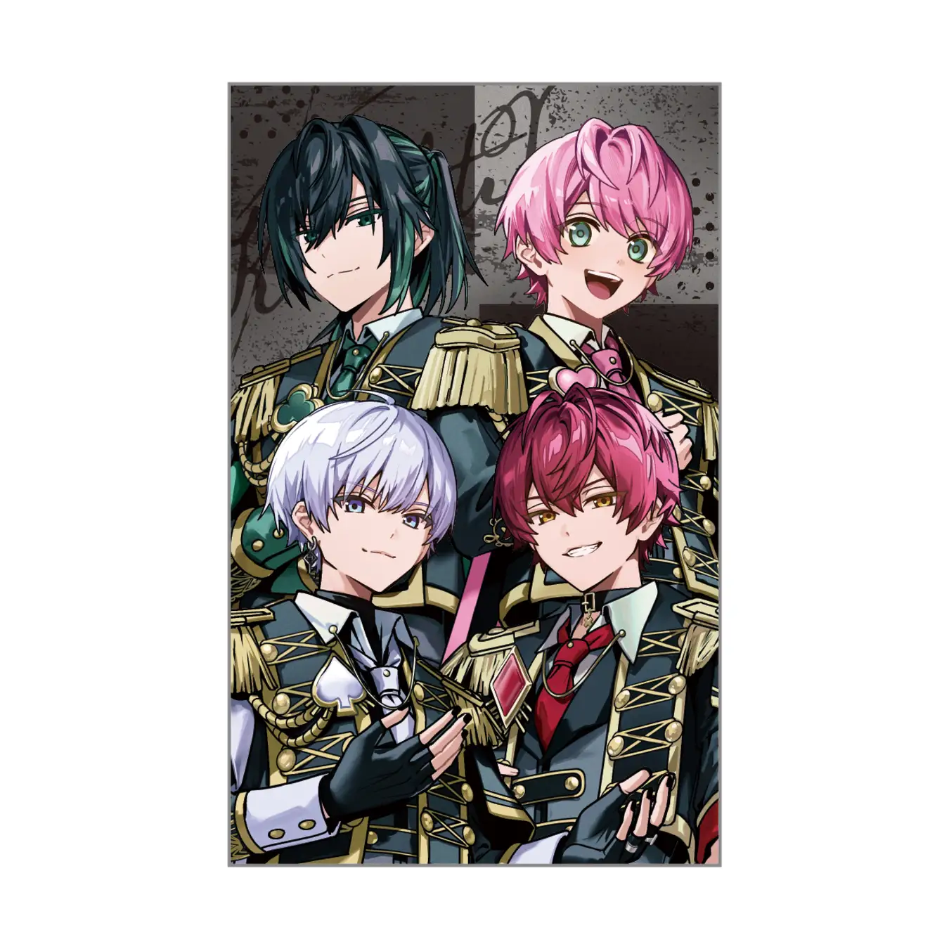 「騎士X」春グッズのビジュアルは、ナポレオン風ジャケットをベースに、メンバーごとにさりげなくアレンジを加えたアーティスト風デザインです。全7アイテムの新作グッズが登場。ミニキャラデザインの「スライドミラー」は、スライドするとメンバーからのメッセージが現れる仕様で、細部までこだわったデザインが特長。新生活にも取り入れやすいサイズ感も魅力です。あわせて、内側に3つ、外側に1つのポケットを備えた「スクエアポーチ」もラインナップ。引手にはトランプマークと剣をあしらったオリジナルデザインを採用しています。