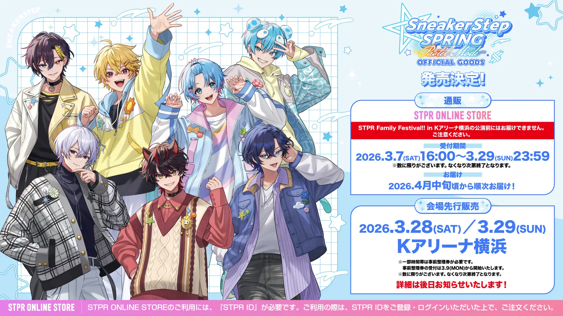 ※販売開始時間・販売場所などの詳細については、『STPR Family Festival!! in Kアリーナ横浜』特設サイトにてお知らせ予定です。