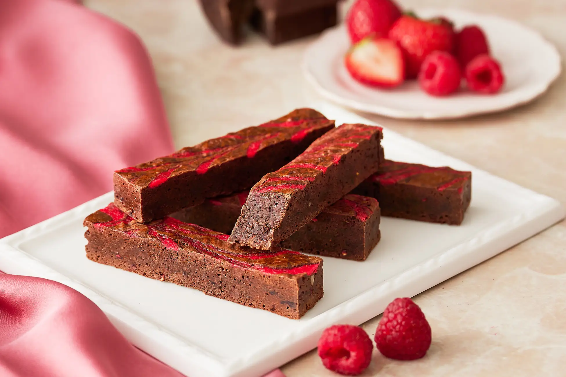 生地には、厳選した2種類のクーベルチュールチョコレートをブレンドし、プチプチと弾ける食感のフリーズドライラズベリーを練り込みました。