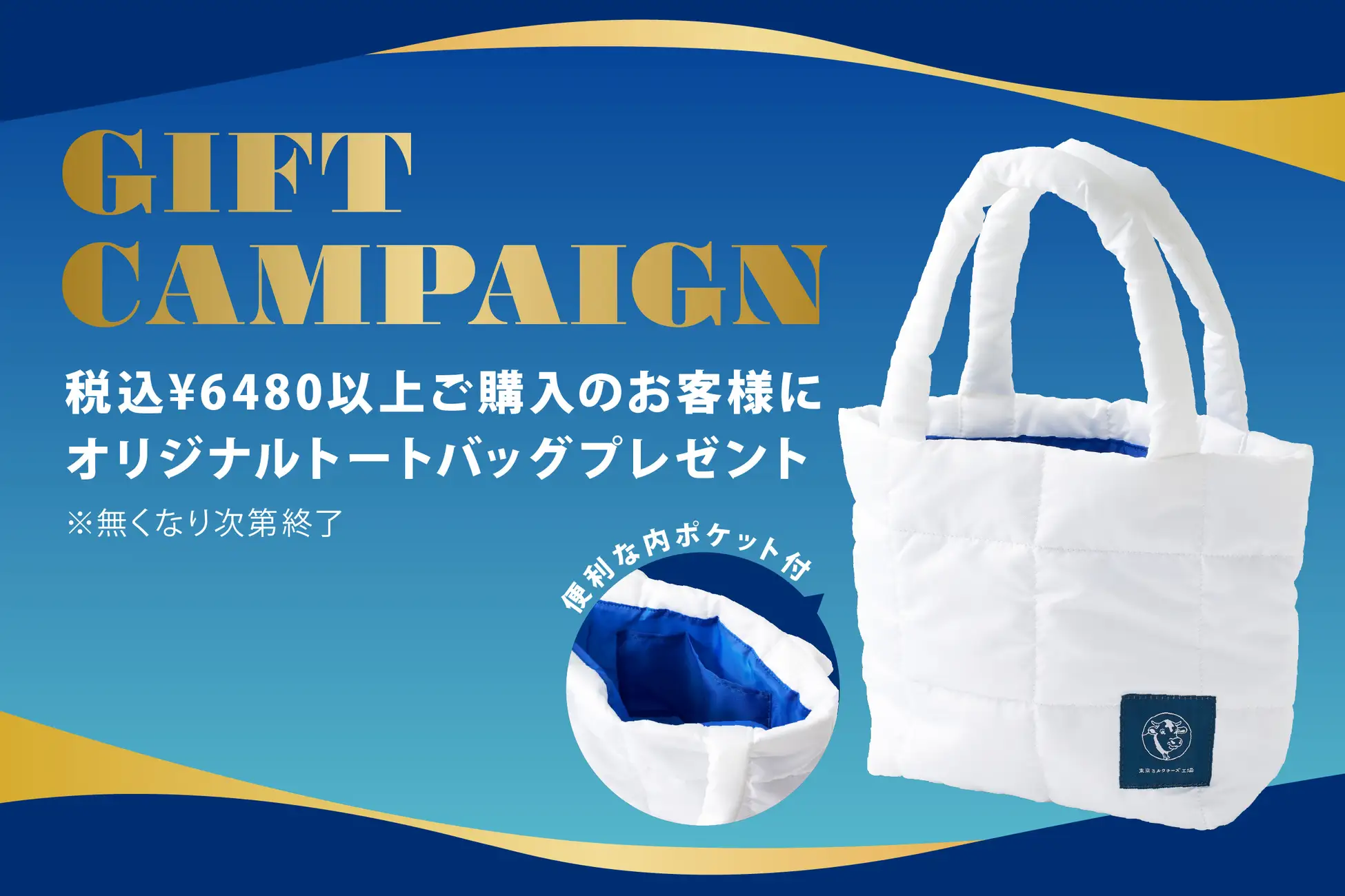 税込6,480円以上をご購入いただいたお客様に、東京ミルクチーズ工場オリジナルトートバックをプレゼントいたします。