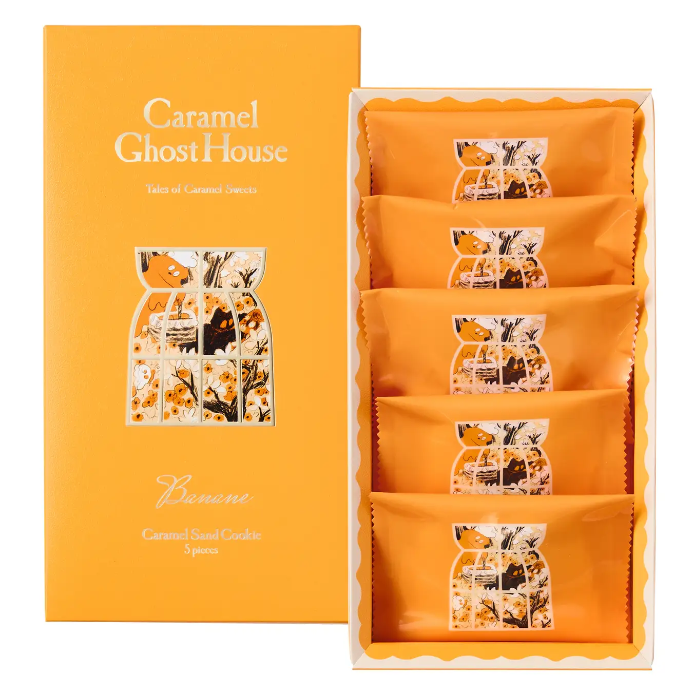 パッケージにはバナナ型の窓から覗く、愛らしいキャラメルオバケの姿。
