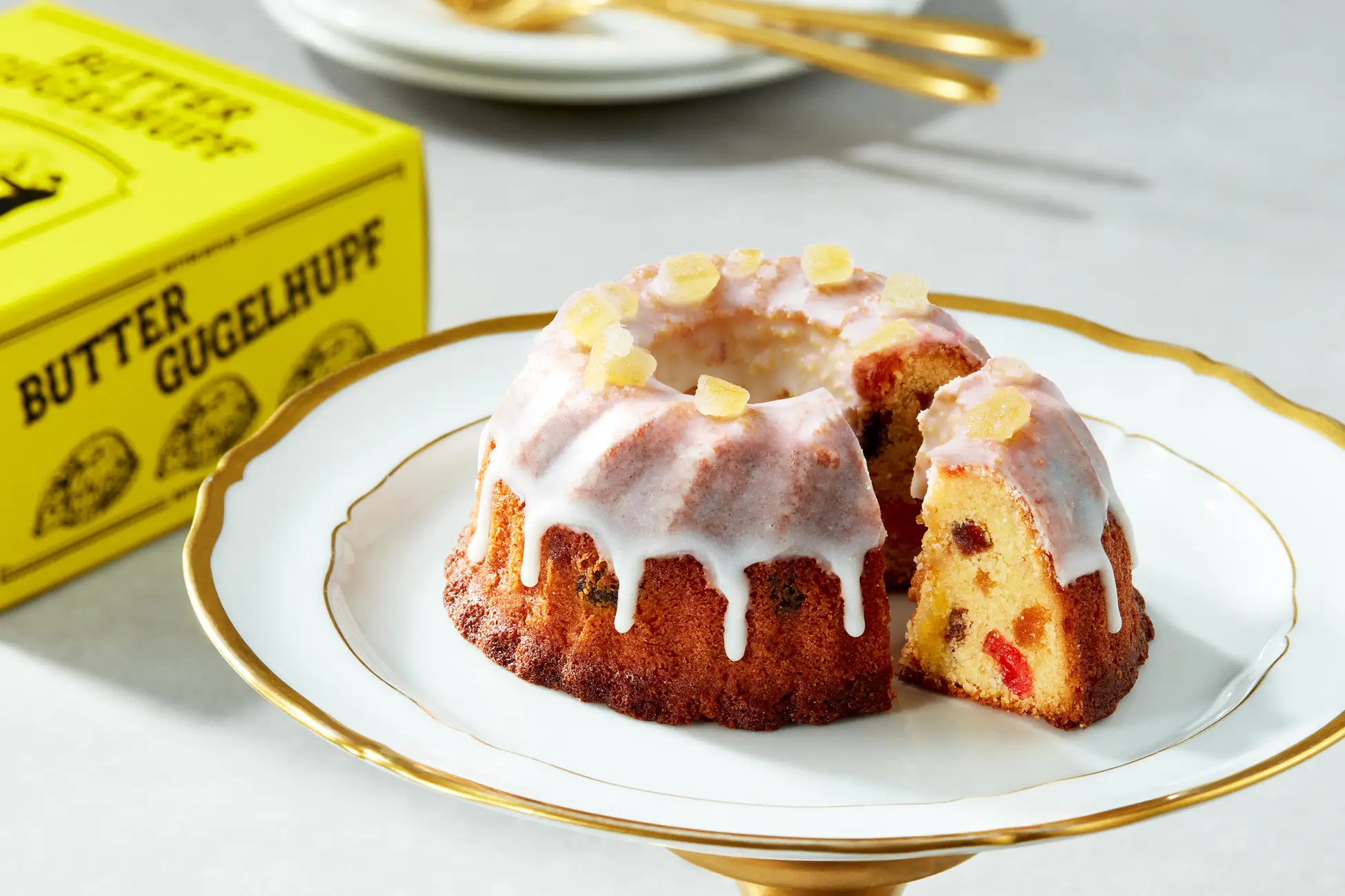 生地には、ラム酒漬けのオレンジ、レーズン、チェリーなどのドライフルーツを混ぜ込んでおり、カットした断面も色鮮やかに、目でも楽しめる一品。シナモンやナツメグなどのスパイスが、より一層華やかにバターのコクを引き立てる上品な仕立てでご用意しました。表面にはグレーズを纏わせ、レモンピールが味わいと見た目に彩りを添える、バターバトラー自信作をぜひご賞味ください。