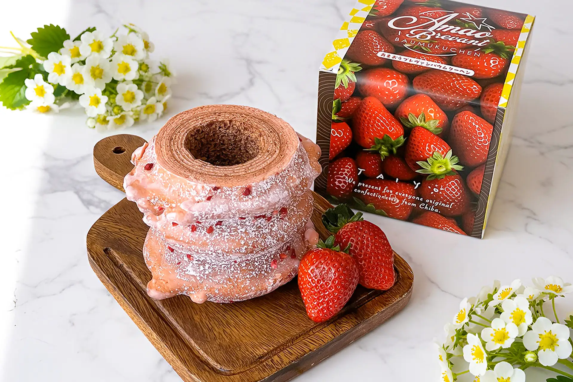 まさに“あまおう尽くし”で仕上げたバウムクーヘンです。