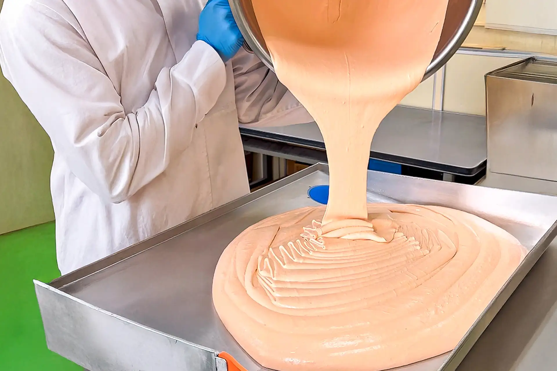 苺生地は焼くと茶色く変色しやすく、一層一層焼きながら鮮やかなピンク色を保つためには、職人の繊細な温度管理が欠かせません。試行錯誤を重ねた職人の技術によって、焼き上げた断面には苺のピンク色がしっかりと息づきます。まさに、職人の執念が生んだ「焼き色の壁」の突破です。