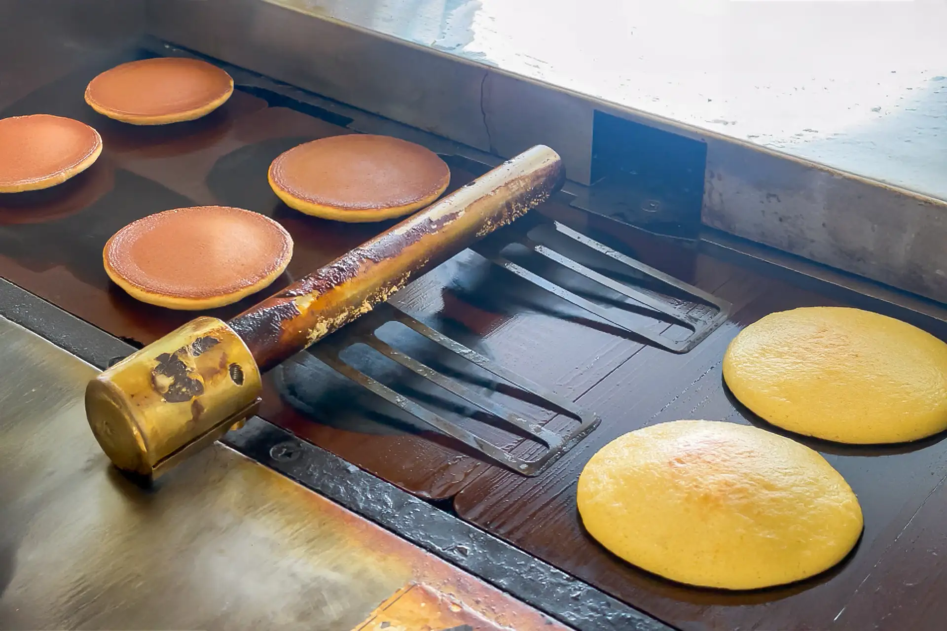 どら焼きの生地は、温度と焼き時間を少しでも誤ると、ふっくら膨らまず、美しい焼き色も生まれません。繊細な火加減と長年の経験があってこそ、理想の生地が完成します。