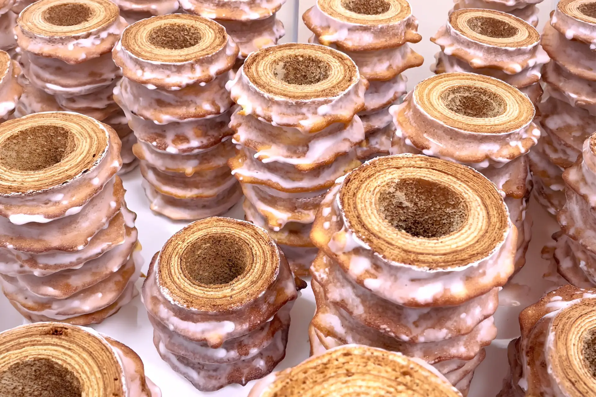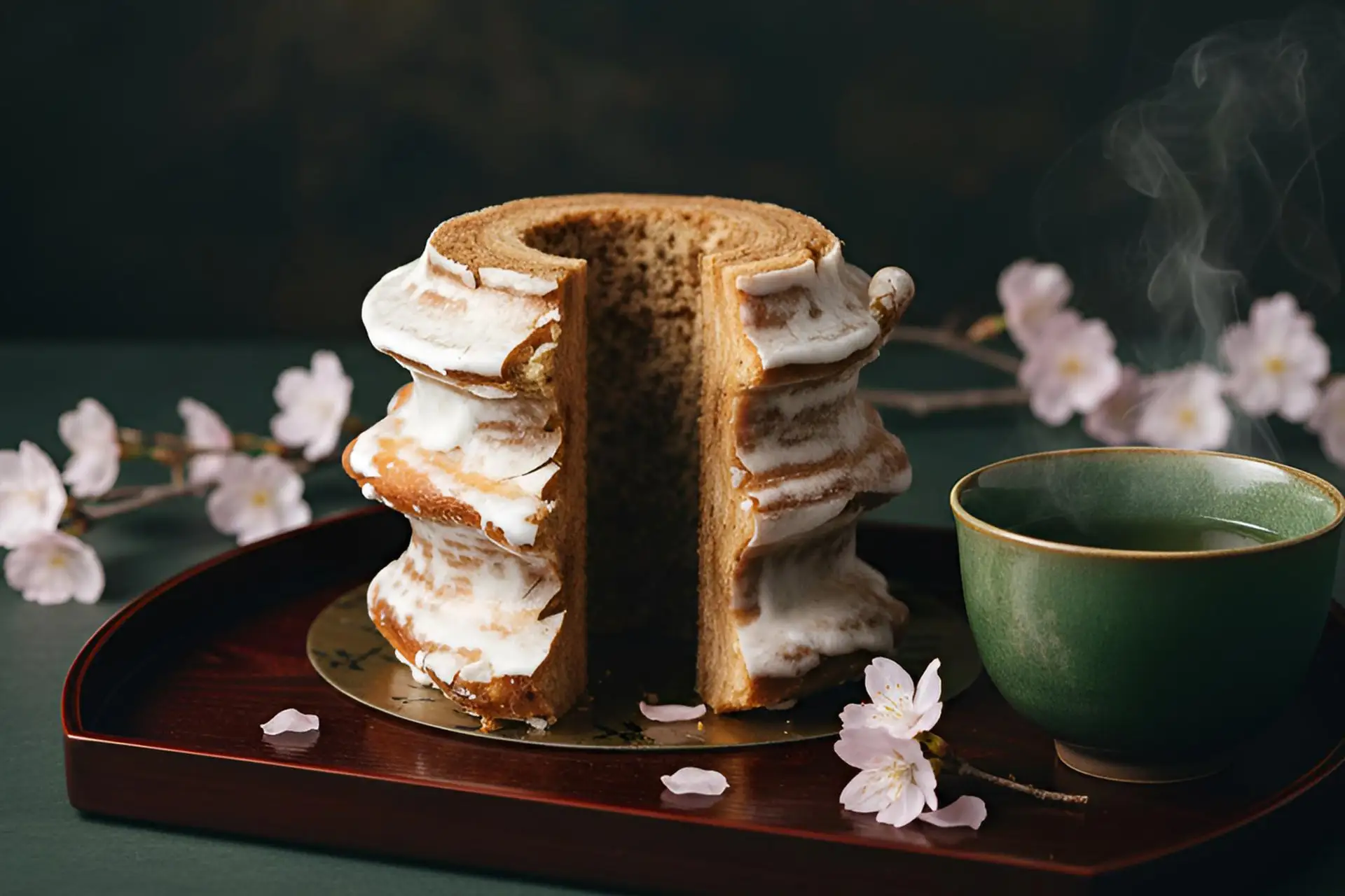 年輪のように重なる層は、「幸せを重ねる」「長く続く繁栄」を象徴するとされ、古くから結婚式などのお祝い菓子として親しまれてきました。