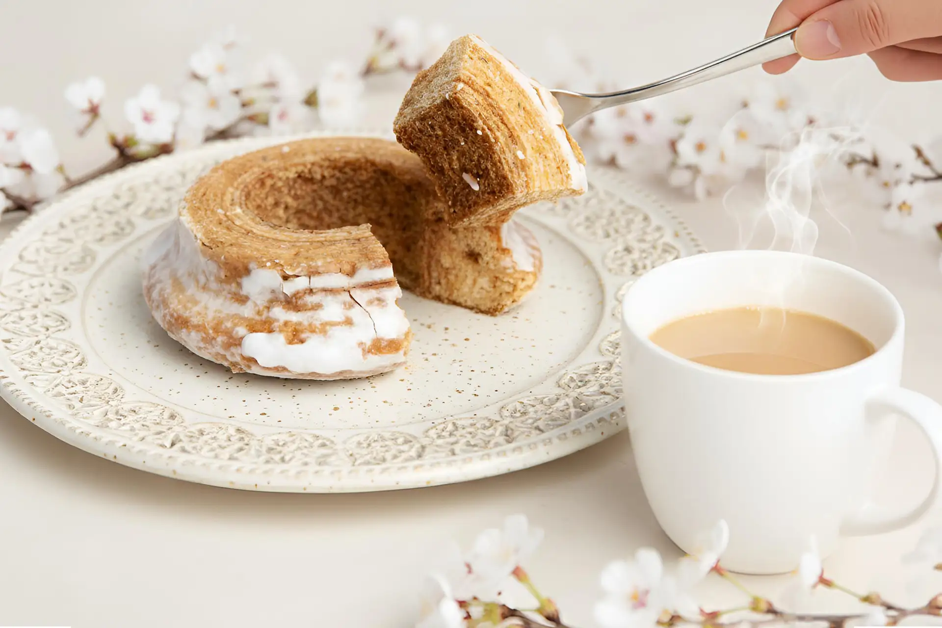 春の景色を、そのまま一つのバウムクーヘンに閉じ込めました。
