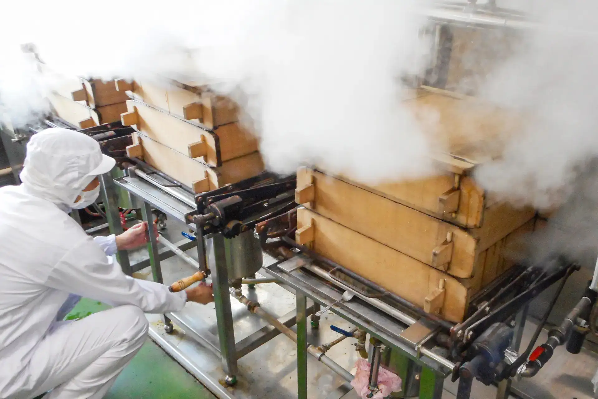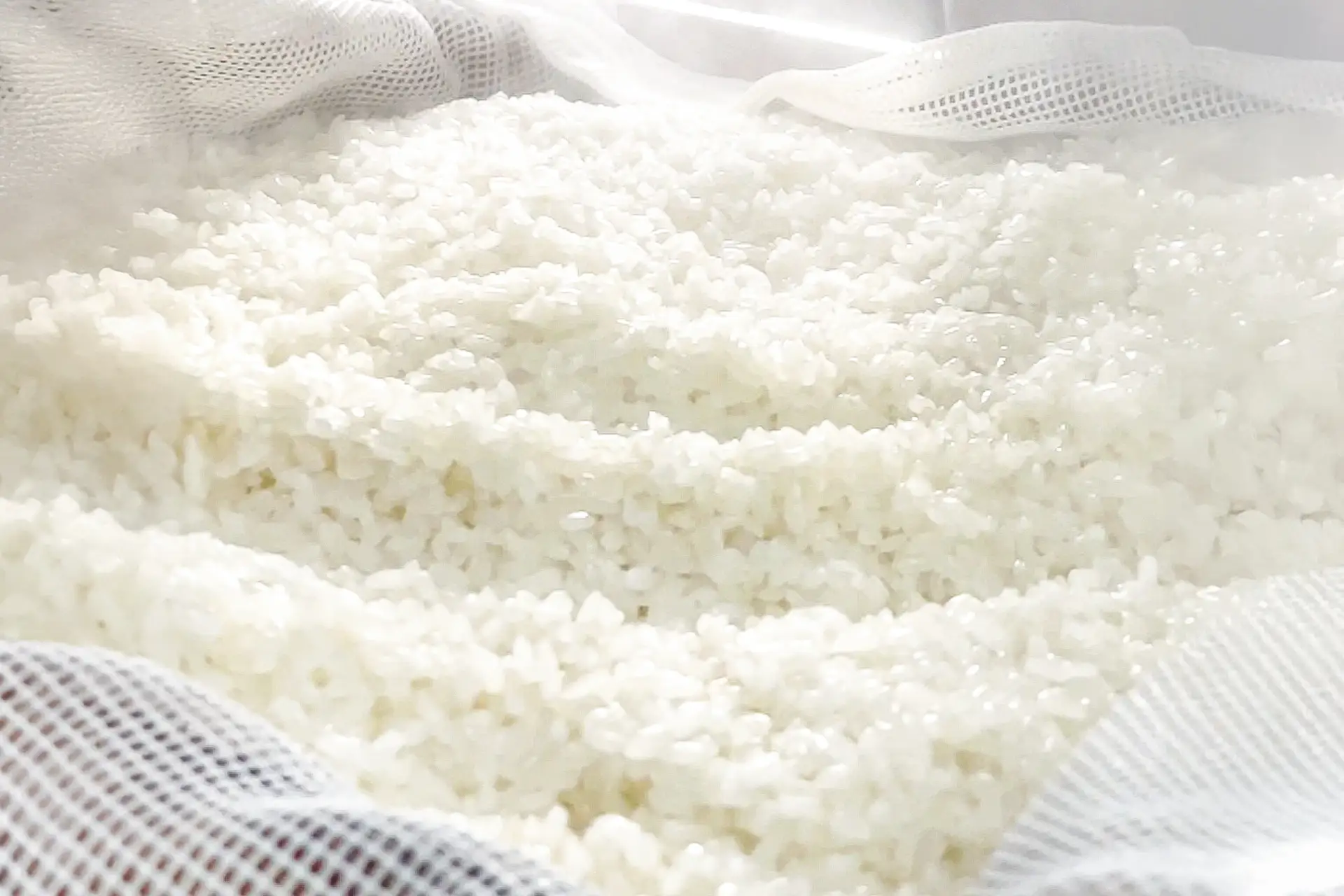 高温の蒸気で表面を包むことで、米粒がキラリと輝くような艶をまといます。それは、お米とは思えないほど透き通った白さと上品な艶。――まさに“白銀の宝石”と呼ぶにふさわしい輝きを放ちます。