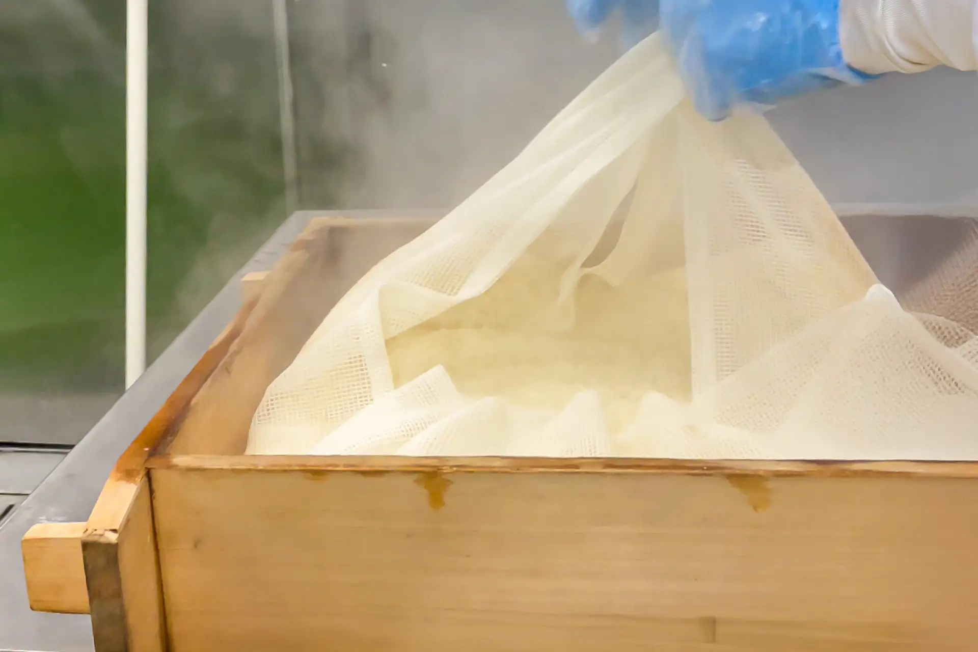 特筆すべきは、粒立ちの良い米が生む、強い粘りと圧倒的なコシの強さです。餅にハサミを入れても生地がまとわりつかず、サクッと切れるほどのコシ。それでいて、噛めばもっちりとした弾力があり、歯切れは驚くほど美しい――それが、最高級もち米マンゲツモチの別格の弾力です。