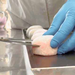 マンゲツモチの場合、つるんとなめらかな表面と、しっかりとしたコシ・弾力、さらに伸びの良さと美しい歯切れを併せ持っています。そのため噛んだ瞬間、「苺 → 餡 → 餅」と、素材が順番にほどけていく“層のある食体験”が生まれます。