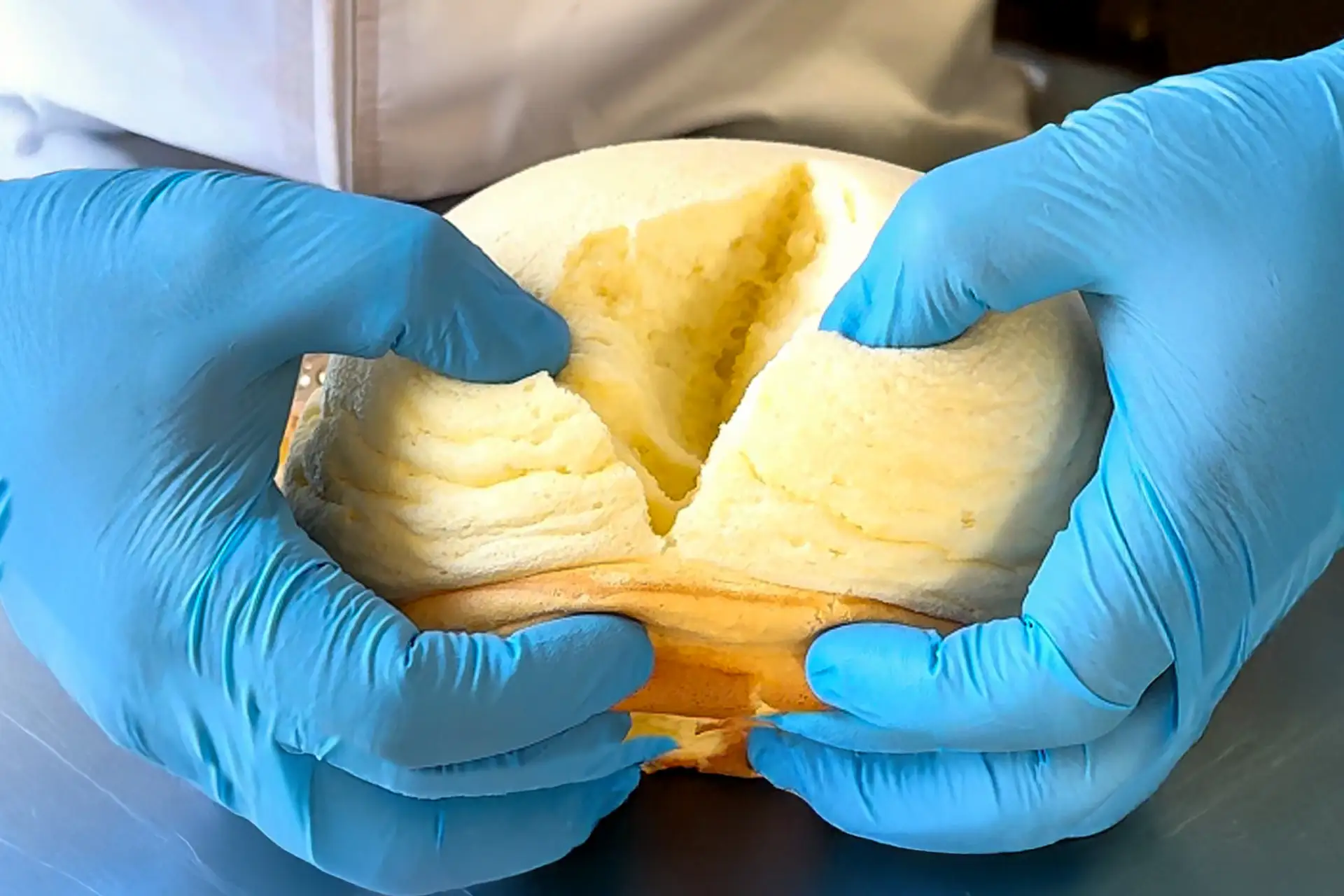 手で軽く触れただけで崩れてしまうほど、ぷるんぷるんの生地は、口の中で「シュワッ」ととろけて消える、まるで本物の雲を食べているかのよう。焼き立てならではのほかほか感とチーズの香りがふんわり広がる、幸福度急上昇まちがいなしの瞬間です。